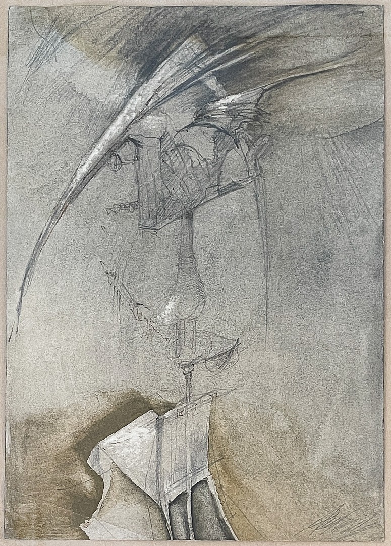 tužka, běloba, kombinovaná technika, papír, 29,5 x 20,5 cm, sign. PD A. Veselý, rám