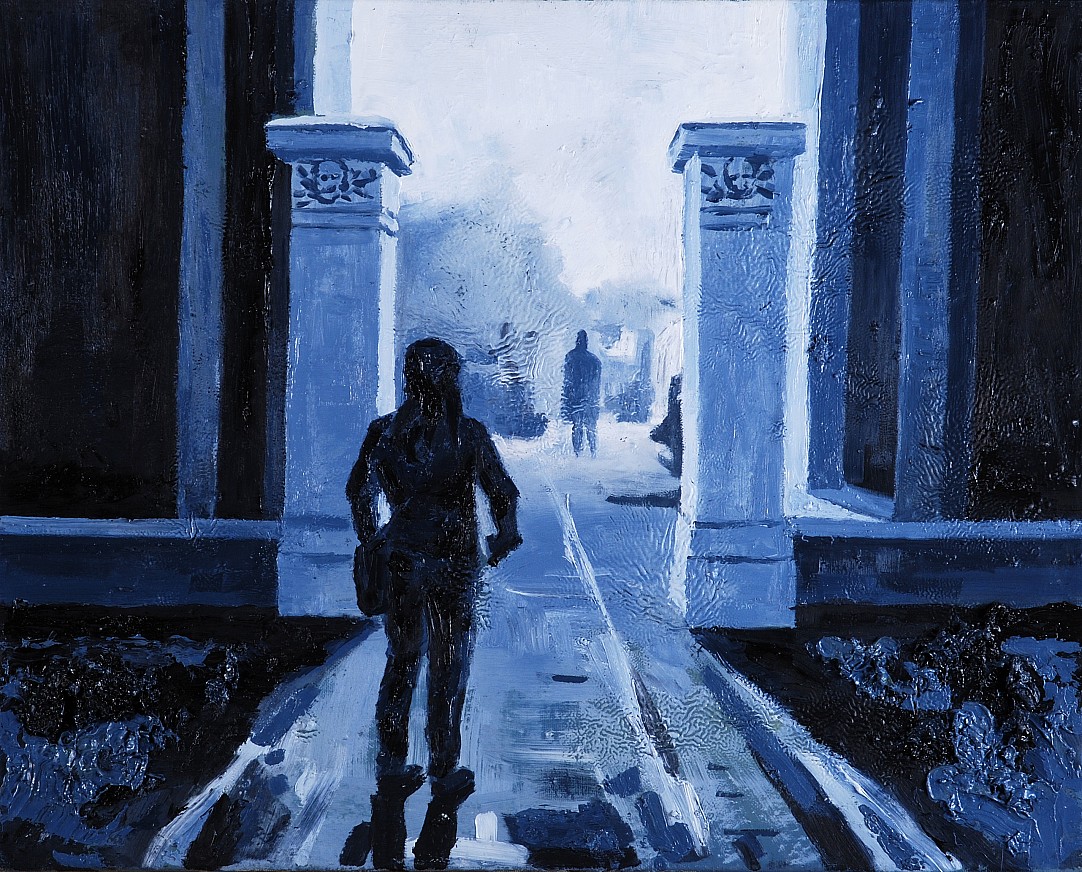 olej, plátno, 2011, 40 x 50 cm, sign. zezadu Vetengl 2011, žák prof. Jiřího Lindovského na AVU v Praze, malíř, kreslíř a grafik, který se ve své tvorbě zabývá především tématem smrti, pohřebními rituály, opuštěnou krajinou a tichou atmosférou hřbitovní architektury