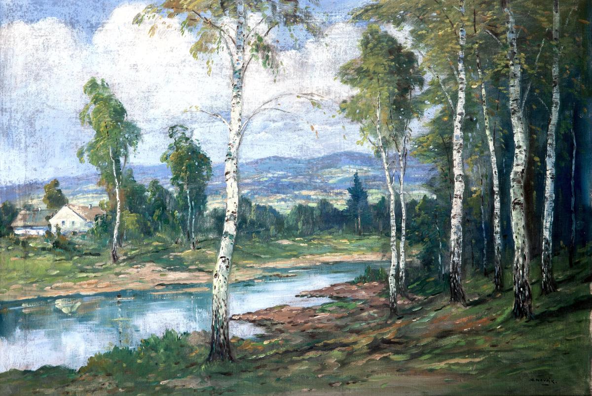 olej, plátno, 66 x 95 cm, sign. PD V. Novák, rám, rám rozpadlý, Aantiqari.at Radhošťská,