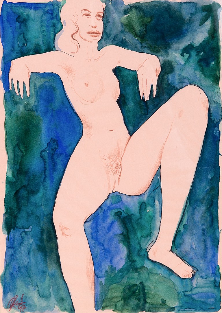 akvarel, pastelky, papír, 1997, 29,3 x 20,8 cm, monogr. LD DK, rám, Aantiqari.at Radhošťská,