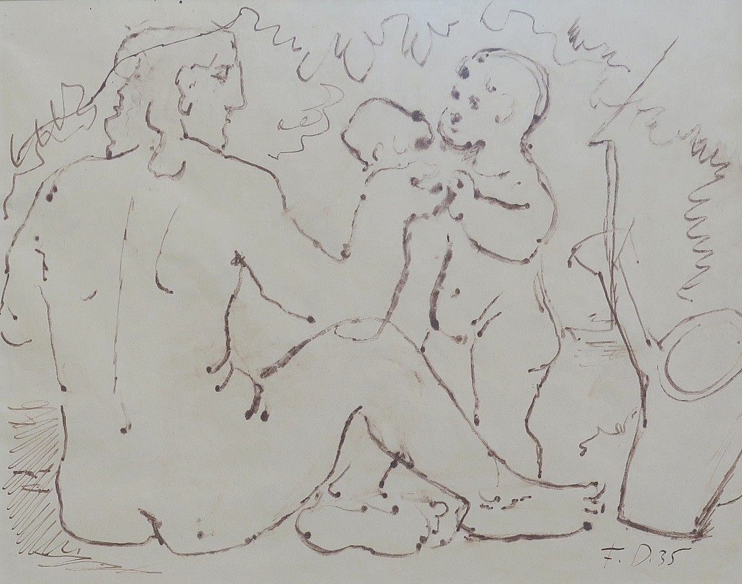 tuš, papír, 1935, 21,5 x 27 cm, monogr. PD F.D. 35, rám, Provenance: Antiquarian Ostrovní, the disciple of M. Slevogt, member of Koliba - the village of art work in Moravia, The Hollar Association of Czech Graphic Artists, The Group of Fine Artists in Brno, The Umelecka beseda in Prague, The Club of…