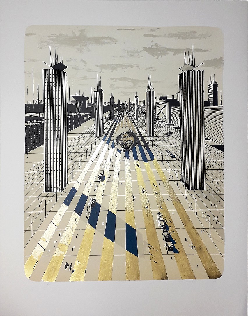 litografie, zlaceno + metal, 2019, 73 x 56,8 cm, sign. PD IGOR GRIMMICH 19, č. 7/31, the disciple of M. Rittstein at The Academy of Fine Arts in Prague