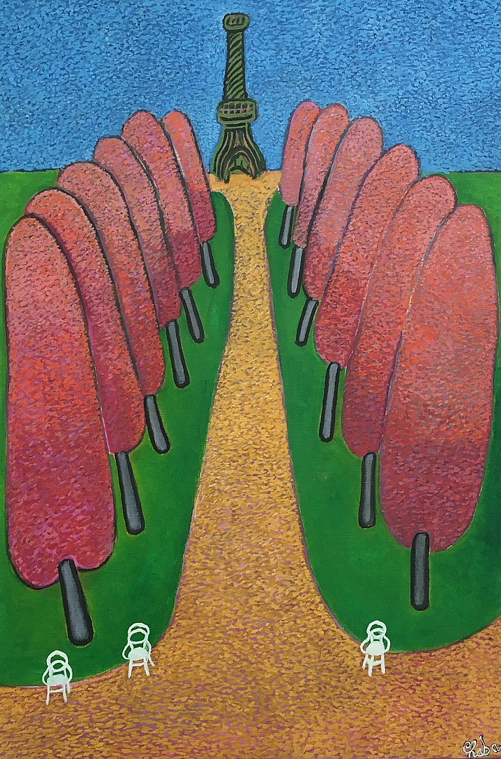 olej, plátno, 1998, 100 x 100 cm, sign. LD Chaba, rám, Chaba byl solitérním, nezařaditelným malířem-samoukem, který ke svému uměleckému výrazu dospěl bez akademického školení. Přesto si vytvořil nezaměnitelný rukopis, který osciluje mezi realitou a snem. Inspiraci čerpal u Zrzavého, Matisse či Chaga…