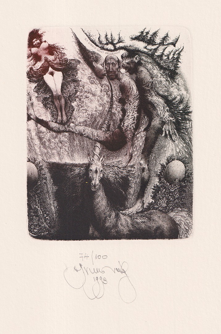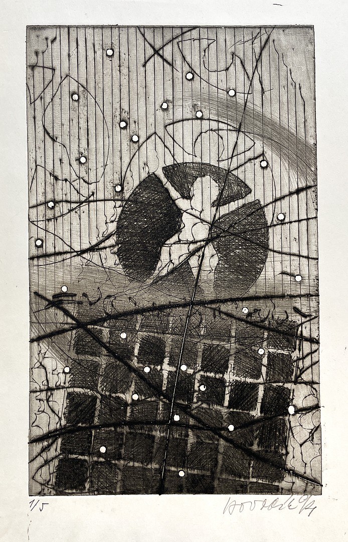 lept, 1993, 13,1 x 10,3 cm, sign. DU ABrunovský 1993, č. 74/100, Provenance: Antiquarian Ostrovní, studied at The Secondary School of Aplied Arts in Bratislava, the disciple of prof. V. Hloznik at The Academy of Fine Arts and Design