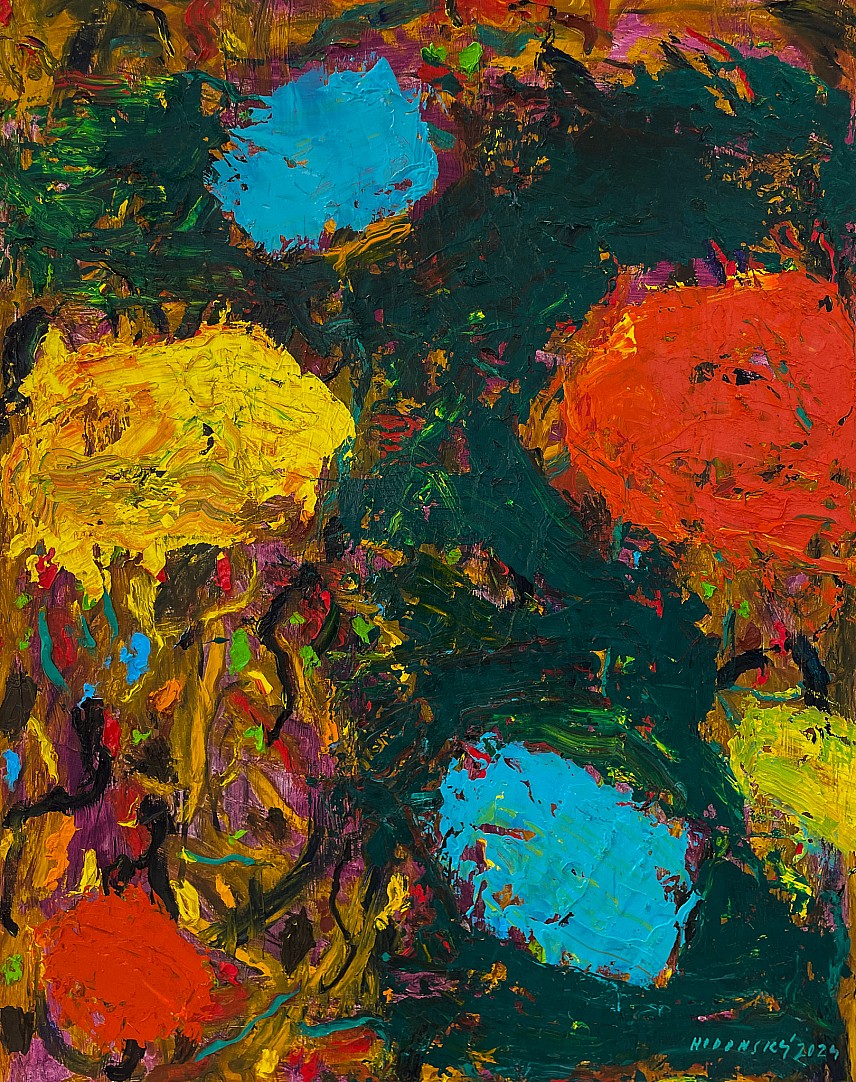olej, plátno, 2024, 100 x 80 cm, sign. PD Hodonský 2024, František Hodonský je český malíř a grafik, jehož tvorba je hluboce zakořeněná v krajině. Již několik dekád se věnuje zachycení její podstaty – nejen viděné, ale i prožité. Studoval u Františka Jiroudka na AVU, kde později vedl ateliér krajiná…