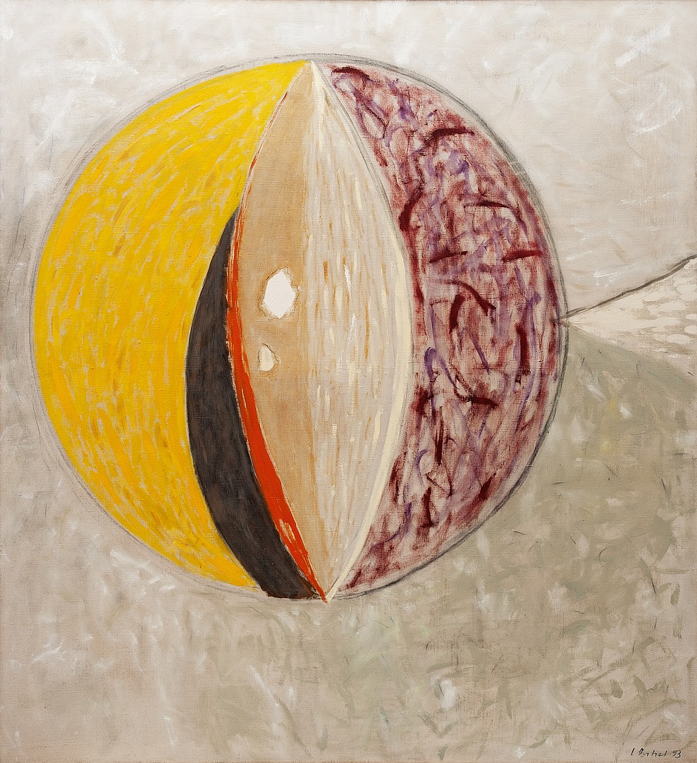 olej, plátno, 1993, 160 x 146 cm, sign. PD I. Ouhel 93, lišta, vzadu štítek Galerie Gema, Ivan Ouhel patří k hlavním českým představitelům lyrické abstrakce. Díky své formě se může na první pohled zdát, že Ouhelovy obrazy jsou čistě abstraktní často však vycházejí z reálného základu. Nejčastějším ná…