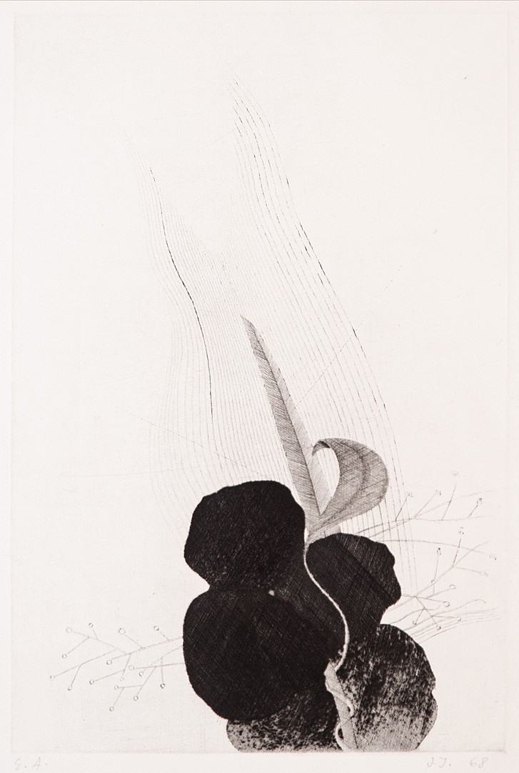 suchá jehla, 1968, 34,8 x 23,4 cm, PD monogr. J. J. 68, e.a., Jiří John patřil v šedesátých letech mezi nejuznávanější české umělce a i přes své zdrženlivé vystupování se stal jednou z ikon tohoto šťastného období našeho výtvarného umění. Za své vynikající grafické listy obdržel několik prestižních …