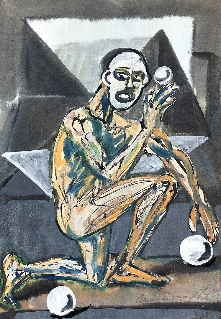 kvaš, tuš, papír, 1992-5, 42 x 29,5 cm, sign. PD Načeradský, Posouzeno kurátorem a správcem pozůstalosti autora Petrem Machem., the disciple of prof. V. Rada, member of Volne sdruzeni 12/15