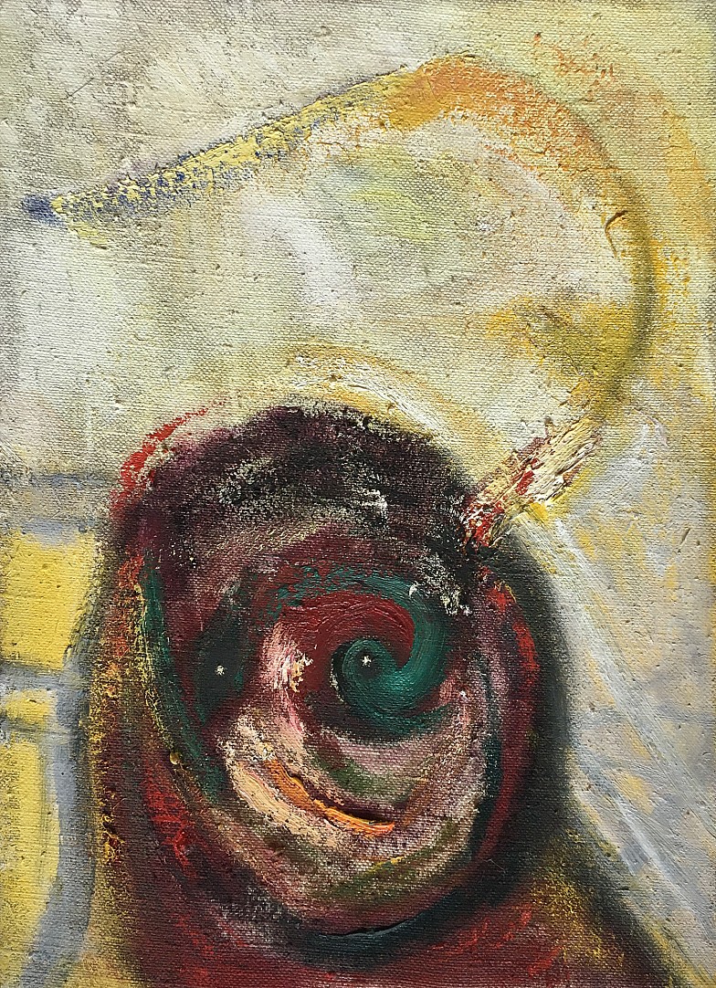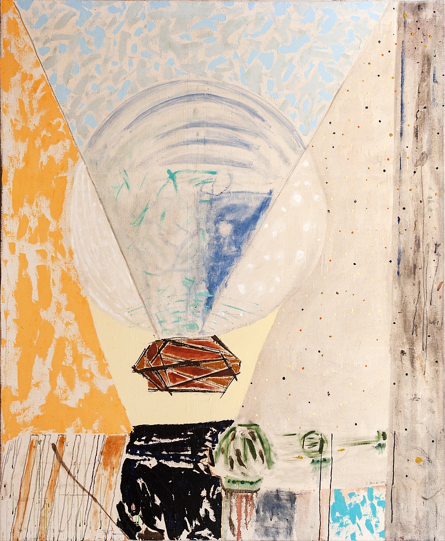 olej, plátno, 2001, 190 x 175 cm, sign. PD I. Ouhel 2001, vzadu štítek Galerie Gema, the disciple of prof. Soucek, member of Volne seskupeni 12/15, Still even late, member of The Umelecka beseda