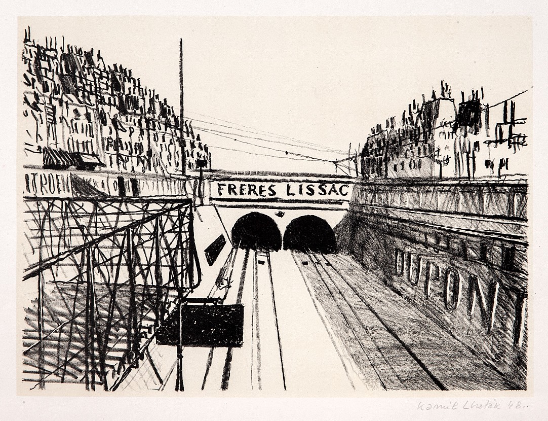 litografie, 1948, 22,6 x 30,6 cm, sign. PD Kamil Lhoták 48, při horním okraji mimo tisk mírně pokrčený a natržený papír, Provenance: Antiquarian Dlážděná, the member of The Umelecka beseda, The Hollar Association of Czech Graphic Artists, Skupina 42