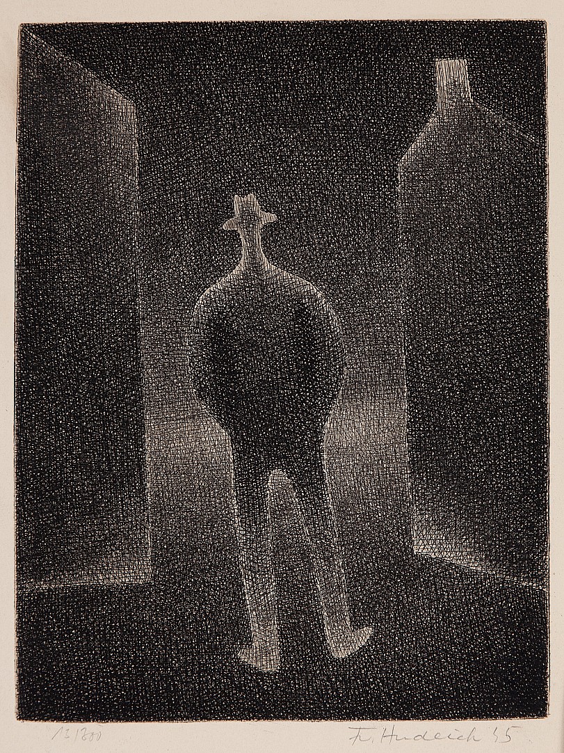 lept, 1945, 29,2 x 22,5 cm, sign. PD F. Hudeček 45, č. 13/300, the disciple of prof. Kysela at The Academy of Arts, Architecture and Design in Prague, member of The Umelecka beseda, Skupina 42, member of The Hollar Association of Czech Graphic Artists, Radar and Index