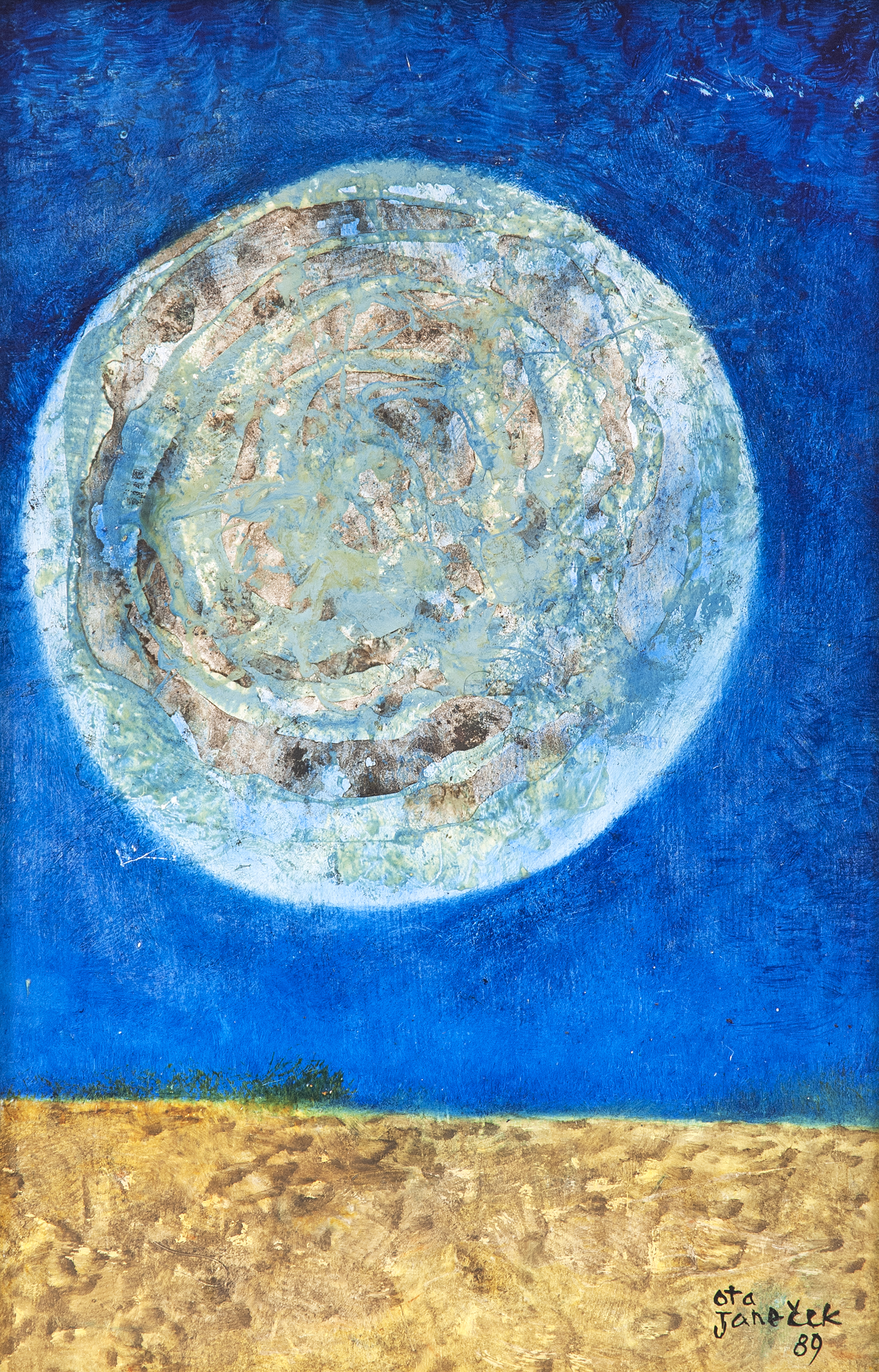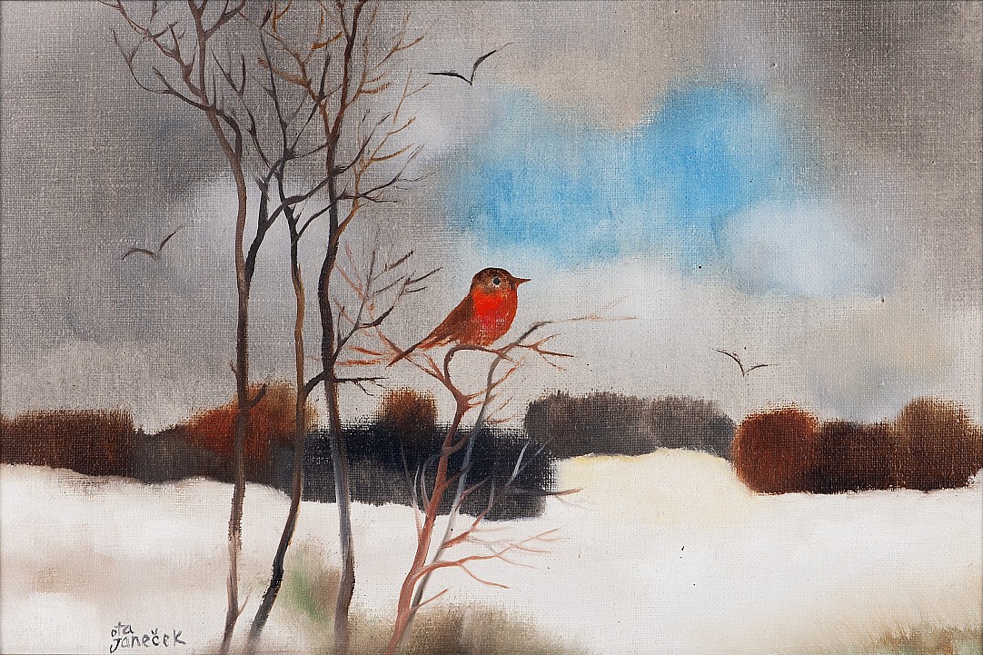 olej, sololit, 1989, 41 x 27 cm, sign. PD Ota Janeček 89, rám, vzadu popsáno, na rubu štítek soupisu díla č. 9757, the disciple of prof. O. Blazicek, C. Bouda and K. Pokorny, member of The Manes Association of Fine Artists, The Hollar Association of Czech Graphic Artists