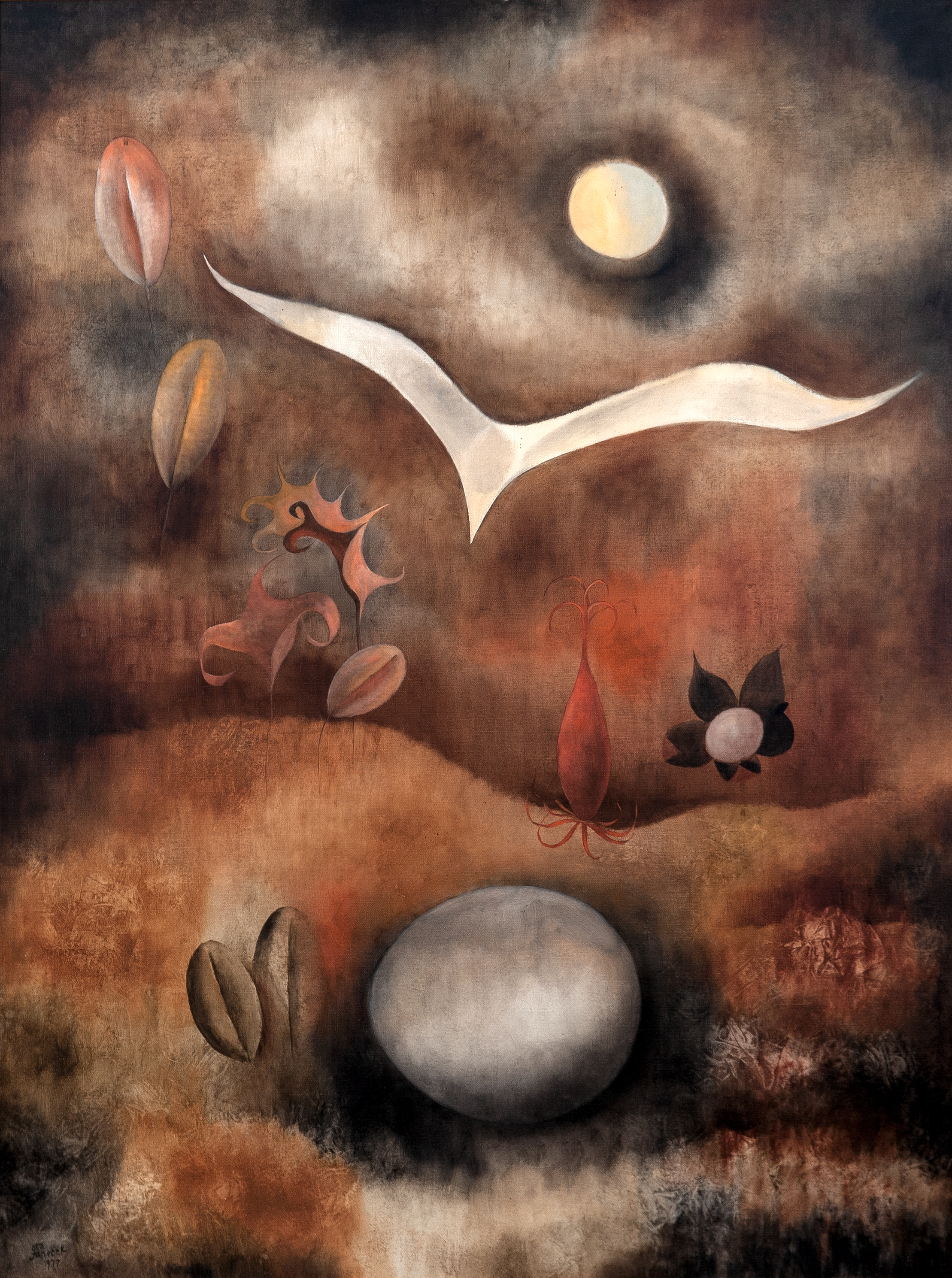 olej, plátno, 1977, 130,5 x 97,5 cm, sign. LD Ota Janeček 1977, rám, č. katalogu 3278, na zadní straně popsáno GVU Olomouc; Ota Janeček, student kreslení u Oldřicha Blažíčka, Cyrila Boudy a Karla Pokorného na Českém vysokém učení technickém, po uzavření školy za války pracoval v továrně na výrobu jí…