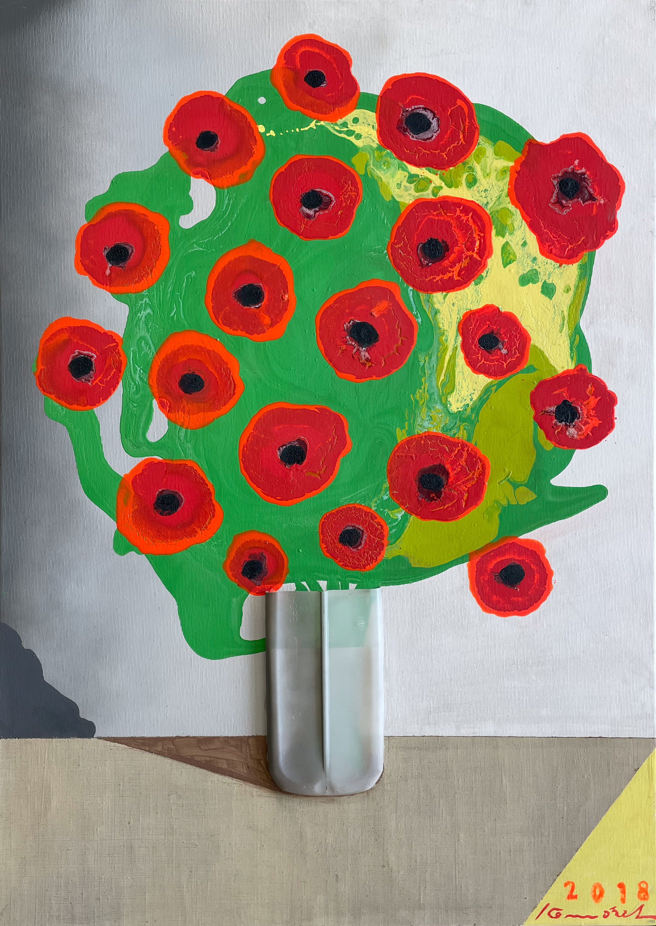 akryl, asambláž, plátno, 2018, 50 x 70 cm, sign. DU Komárek 2018, Ivan Komárek je český malíř, grafik a sochař, jehož tvorba se vyznačuje výraznou stylizací lidské figury a jejími transformacemi do geometrických a abstraktních forem. Studoval na Akademii výtvarných umění v Praze v ateliéru Jana Sm…