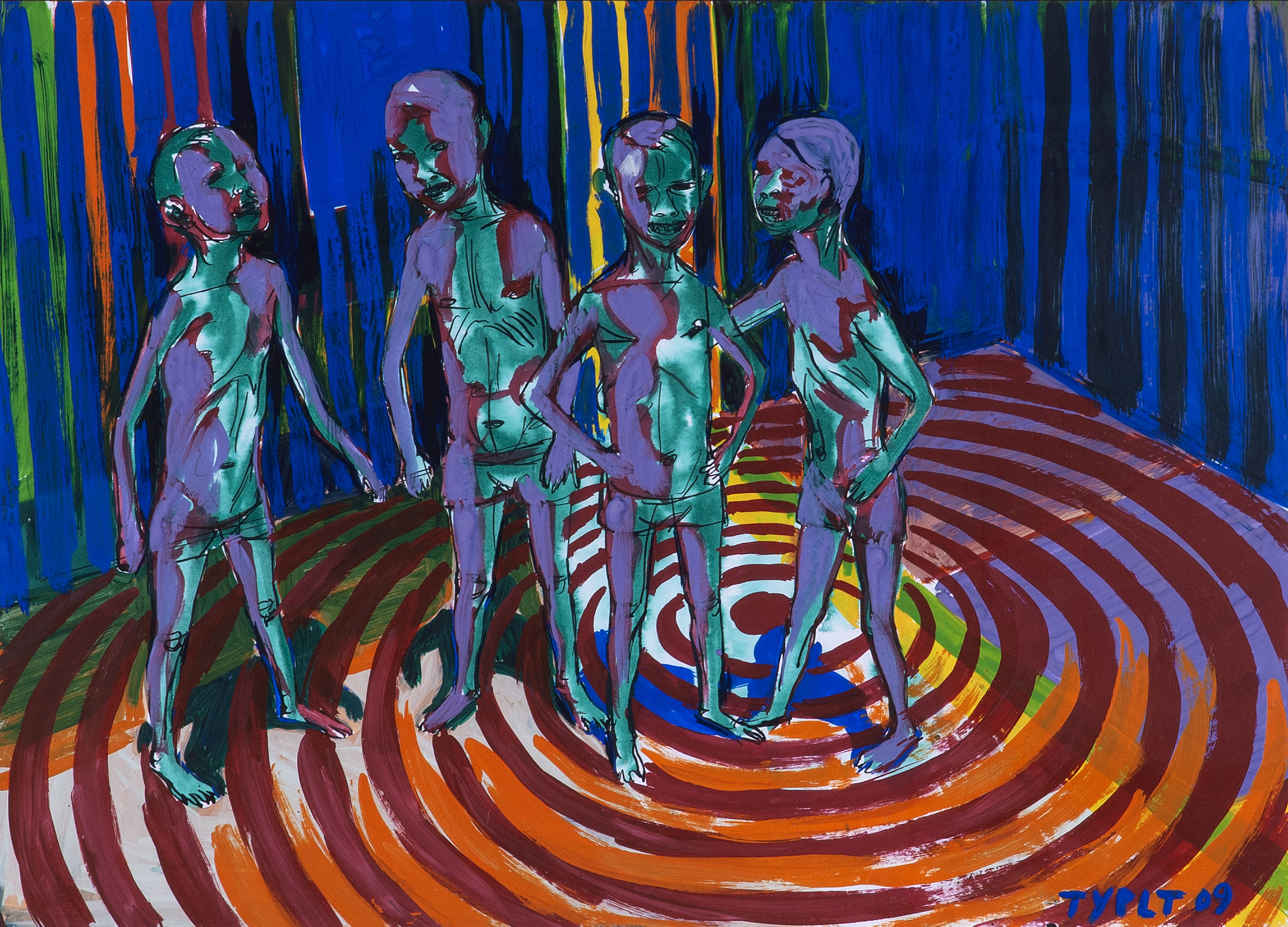 tempera, papír, 2009, 50 x 70 cm, sign. PD Typlt 09, rám, vysoce atraktivní dílo ze sběratelsky vyhledávaného období od čelného představitele současné české malby, který ve svém díle zhodnocuje výsledky školení u významných profesorů na českých a německých uměleckých školách, jež dále zcela osobitým…