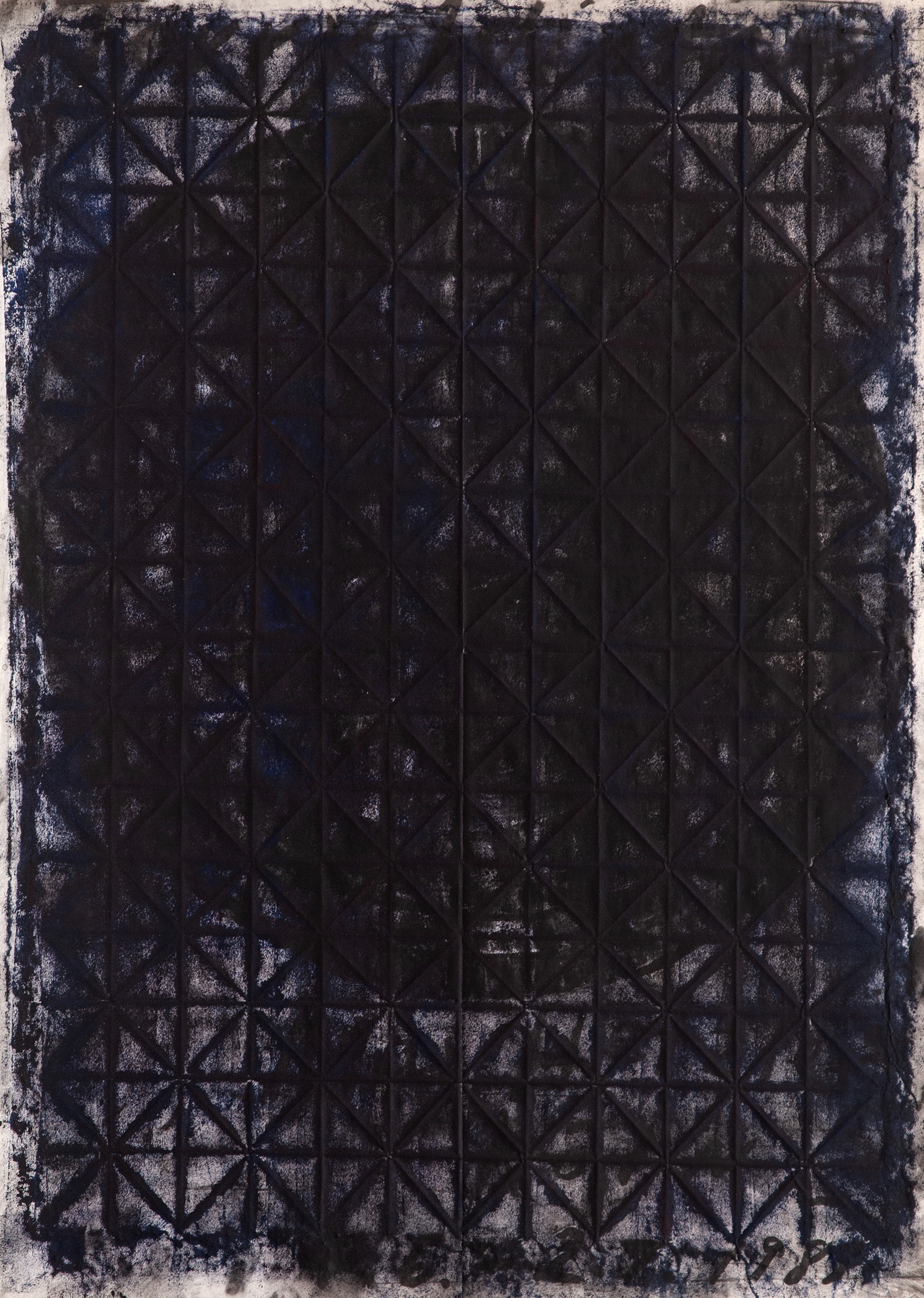 kombinovaná technika, kresba na reliéfně strukturovaném papíře, 1988, 91,5 x 64 cm, sign. na zadní straně F. Kyncl 88, rám, František Kyncl, významný český malíř a sochař, se narodil 21. listopadu 1934 v Pardubicích. Jeho umělecká kariéra nesla výrazný konstruktivistický rukopis a patřil mezi klíčov…