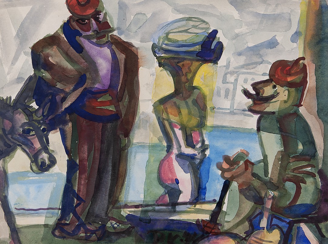akvarel, papír, 1974, 20,5 x 26,5 cm, DU monogr. P.K., rám, the disciple of prof. E. Dite, K. V. Masek and J. Schikaneder at The Academy of Arts, Architecture and Design in Prague, member of The Manes Association of Fine Artists, The Umelecka beseda and The Social group Ho-Ho-Ko-Ko