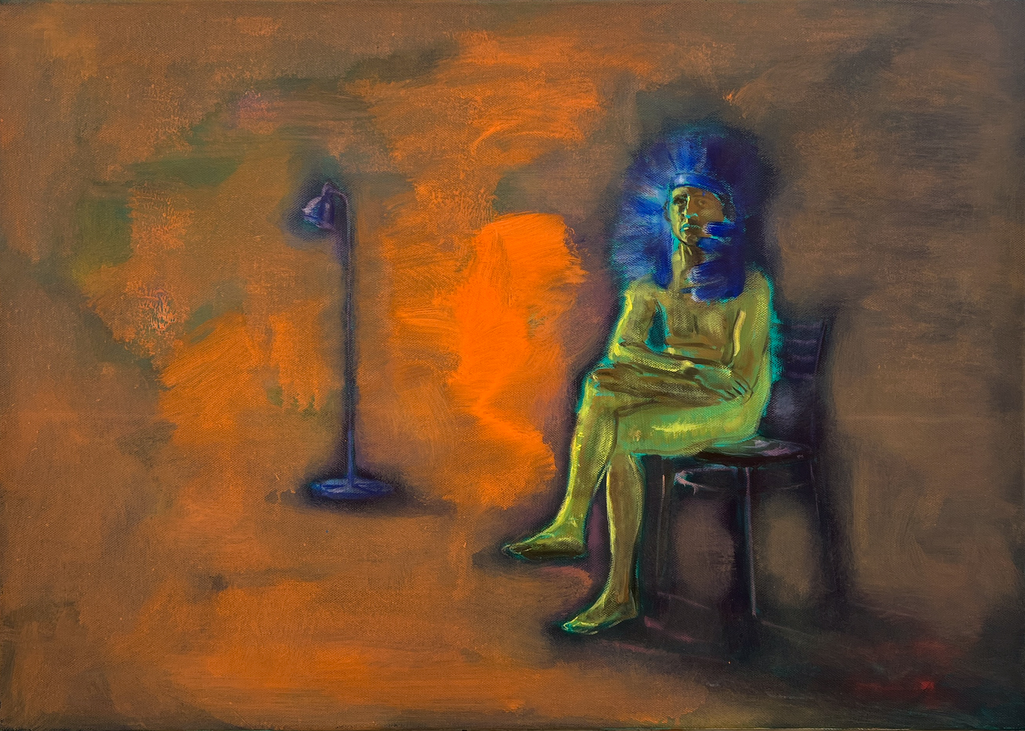 olej, plátno, 2014, 50 x 70 cm, sign. vzadu Anderlová , Alena Anderlová je absolventkou Akademie výtvarných umění, kde studovala v ateliérech M. Rittsteina a A. Střížka. Autorka se svou tvorbou hlásí k figurativní linii současné malby, a v jejím podání dochází v dílech k jistým konfrontacím či střet…