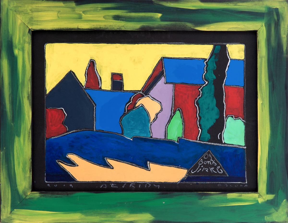 akryl, pastel, karton, 2009, 51 x 71 cm, sign. PD Boris Jirků, malovaný rám, Boris Jirků, profesor, malíř, sochař a ilustrátor, se narodil 10. dubna 1955 ve Zlíně. Absolvoval Střední uměleckoprůmyslovou školu v Uherském Hradišti a následně pokračoval ve studiu na Akademii výtvarných umění v Praze, k…