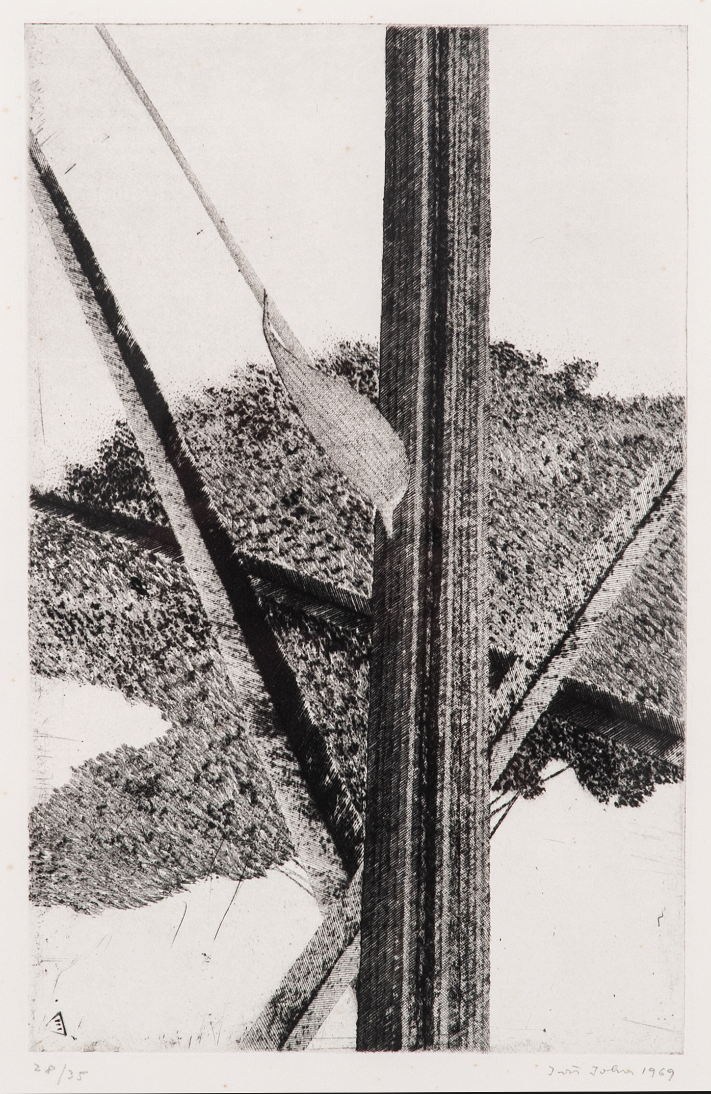 suchá jehla, 1969, 34,5 x 21 cm, sign. PD Jiří John 1969, rám, č. 28/35, Jiří John patřil v šedesátých letech mezi nejuznávanější české umělce a i přes své zdrženlivé vystupování se stal jednou z ikon tohoto šťastného období našeho výtvarného umění. Za své vynikající grafické listy obdržel několik p…