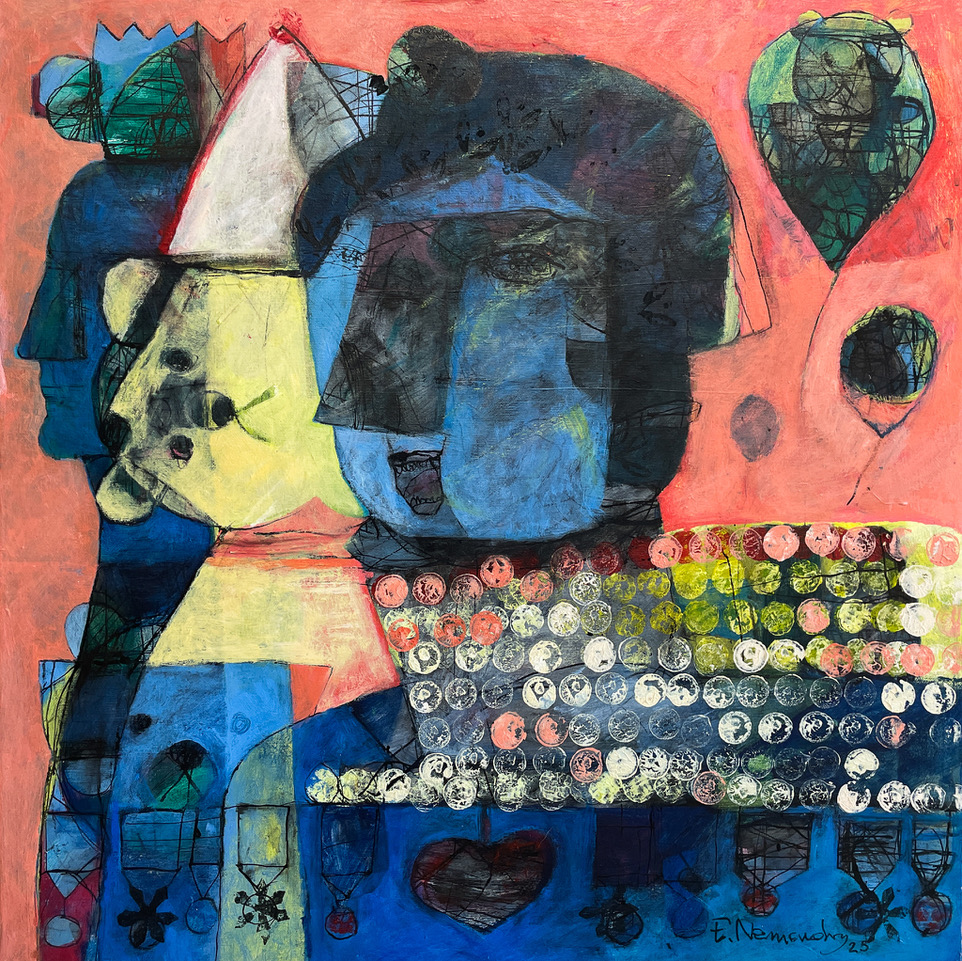 akryl, kombinovaná technika, plátno, 2025, 60 x 60 cm, sign. PD E. Nemoudry