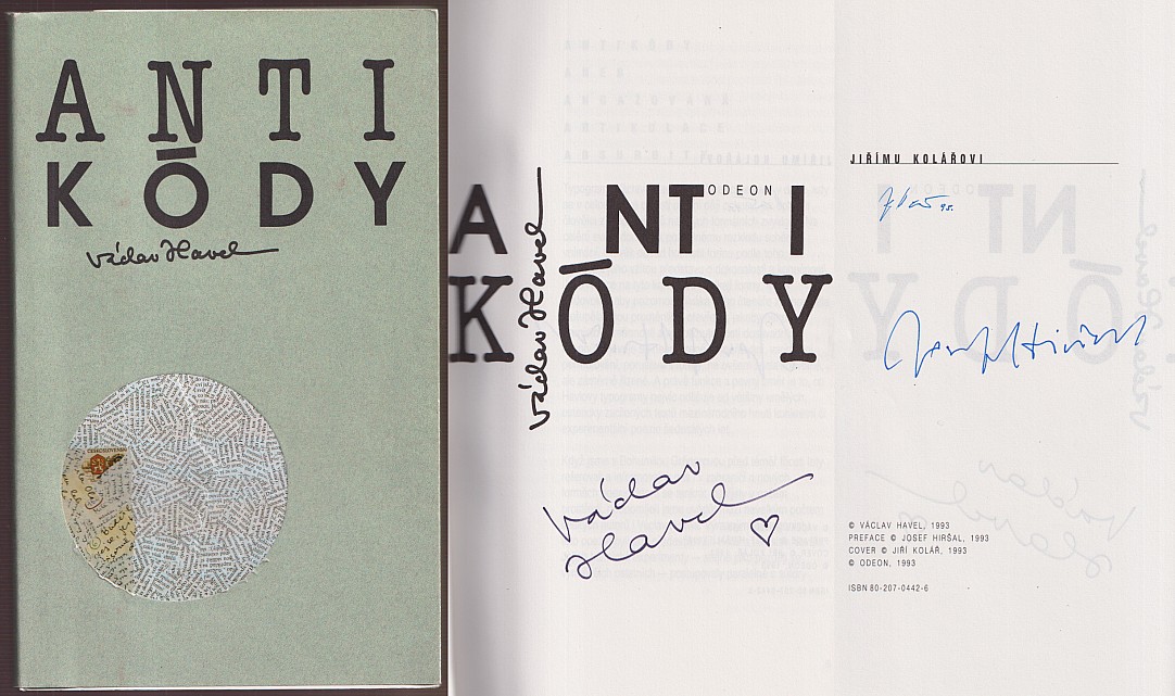 kniha, podpis na titulu fixou Václav Havel, obálka a podpis za titulem J. Kolář, úvodní slovo a podpis za titulem Jos. Hiršal, úprava Vl. Nárožník, vydal Odeon, Praha 1993, pův. brož s ob., 95 s. + příloha, velmi dobrý stav, Provenance: Antiquarian Ostrovní, the founder of Skupina 42, member of The …