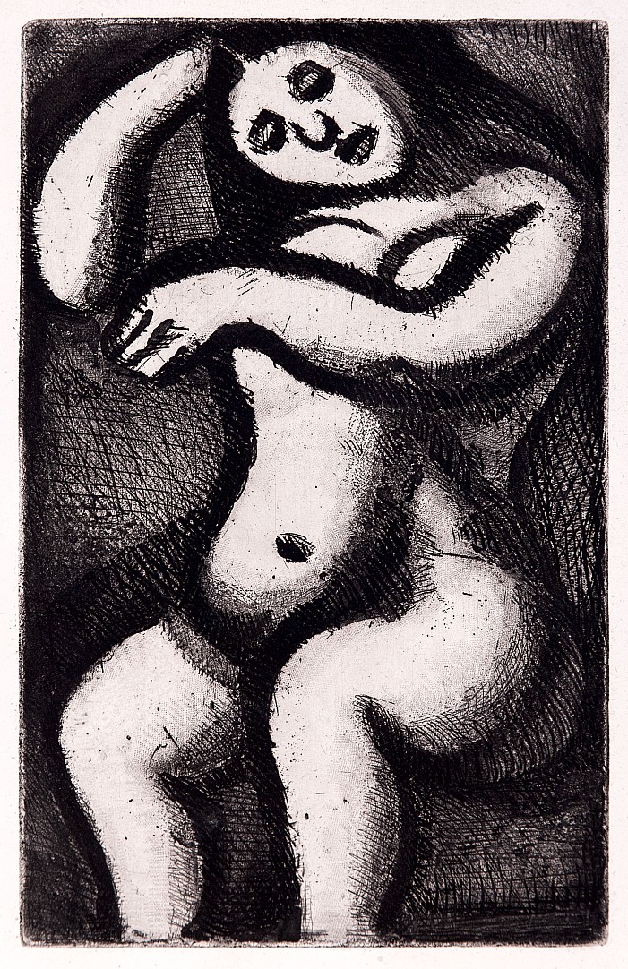 lept, 1918, 26,5 x 16,7 cm, značeno LN v desce G. R., Grafika byla vytvořena v roce 1928 a publikována v roce 1932 ve vzácném vydání „La réincarnation du Père Ubu“ z iniciativy vydavatele a autora Ambroise Vollarda. Desky byly vyrobeny v dílnách Aux Deux Ours a po tisku byly poškrábány., Provenance:…