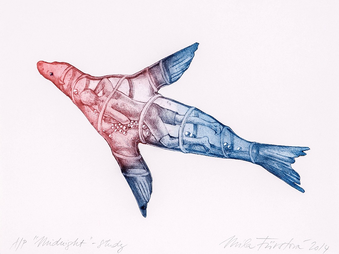 lept, 2014, 44,5 x 52 cm, sign. PD Míla Fürstová 2014, rám, autorský tisk, grafika vznikla v rámci spolupráce s britskou kapelou Coldplay na obalu alba Ghost Stories, Provenance: Antiquarian Dlážděná