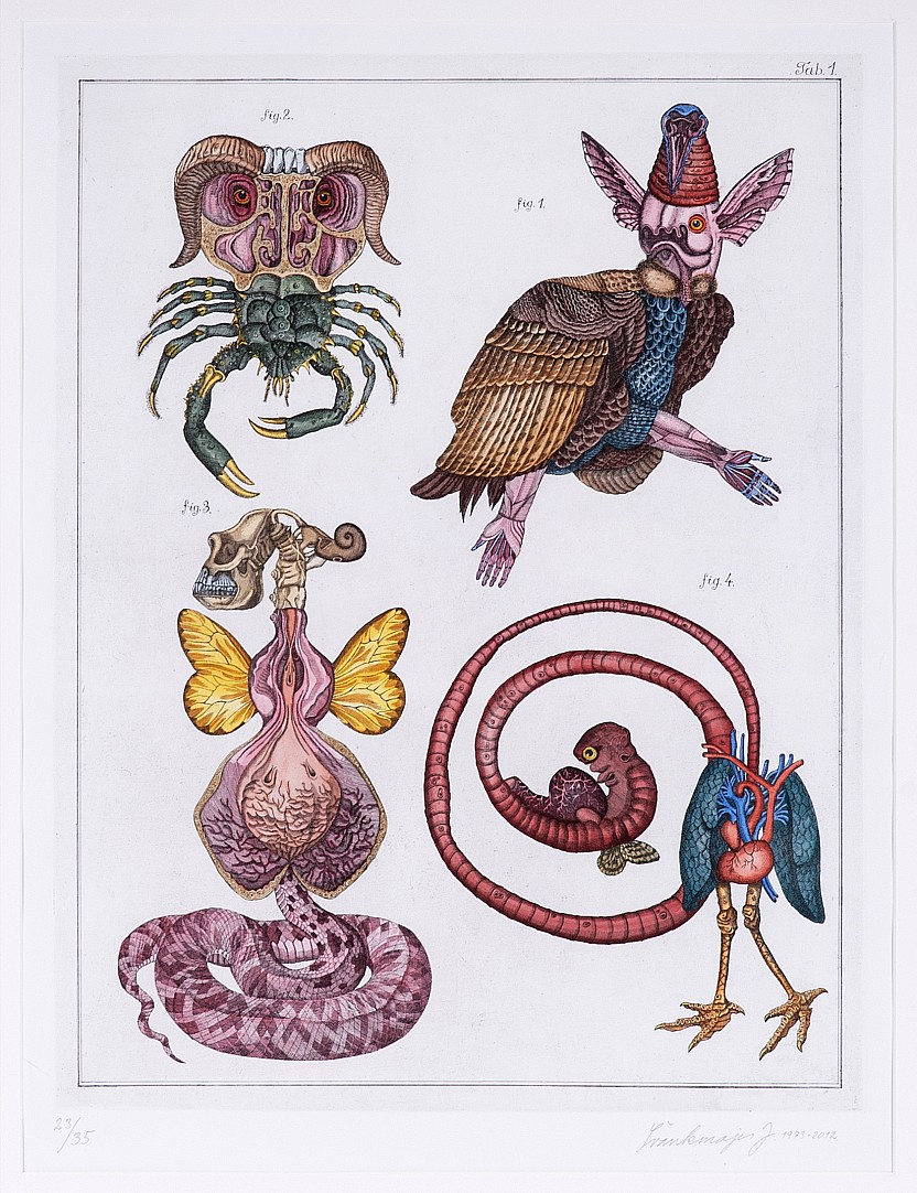 lept, ručně kolorovaný, 1973 - 2012, 64 x 49 cm, sign. PD Švankmajer J. 1973 - 2012, rám, č. 22/35
