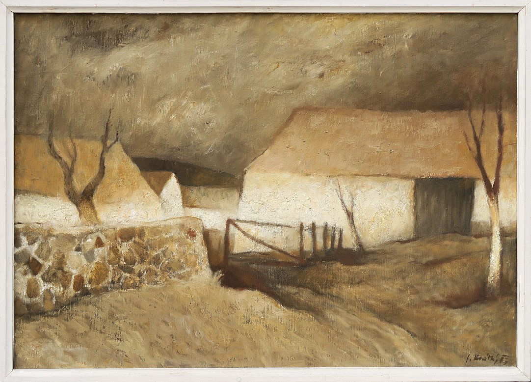 olej, plátno, 1983, 58 x 80 cm, sign. PD J. Krátký 83, rám, vzadu štítek s popisem, Antikvariát Ostrovní
