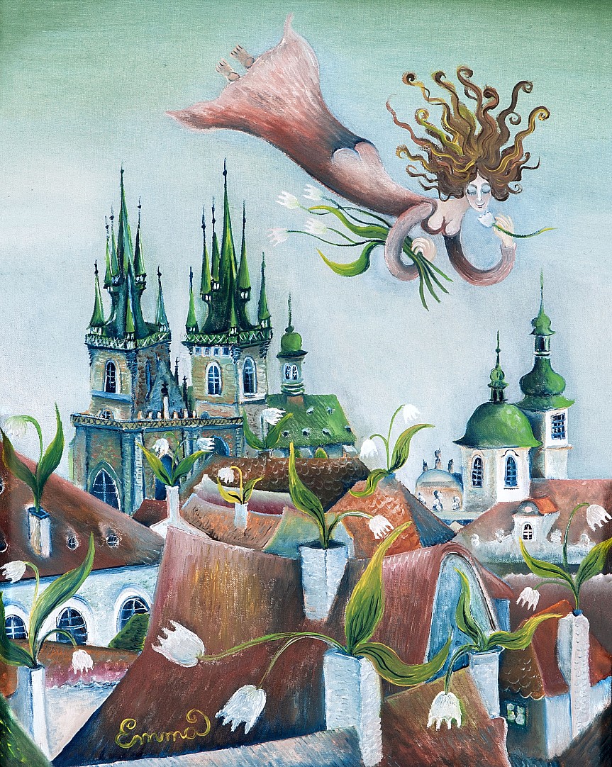 olej, plátno, 38 x 30 cm, sign. LD Emma, rám, na zadní straně štítek s popisem autora a razítkem čfvu, Provenance: Antiquarian Dlážděná