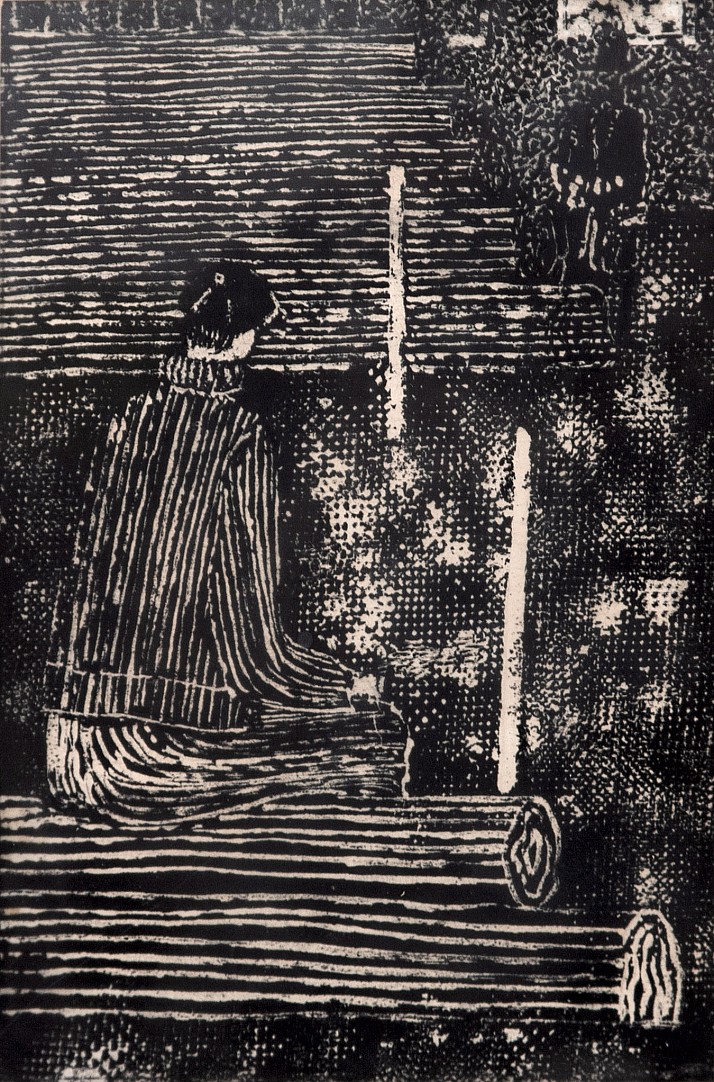 dřevoryt, 23,5 x 15,5 cm, pasparta, the disciple of prof. Kaplicky, member of UB 12, The Umelecka beseda and SCUG
