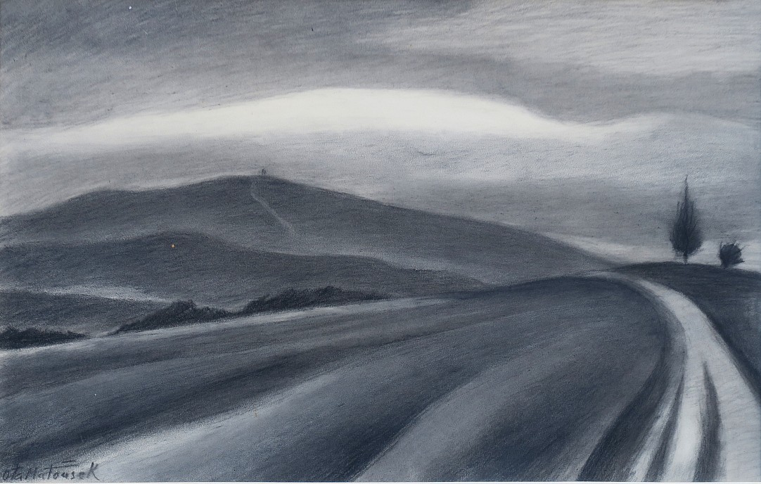 uhel, papír, 30 x 49 cm, sign. LD Ota Matoušek, rám, na rámu drobné oděrky, Antikvariát Ostrovní, žák R. Jindřicha a prof. J. Loukoty, V. Bukovace, J. Preislera a M. Pirnera na AVU v Praze