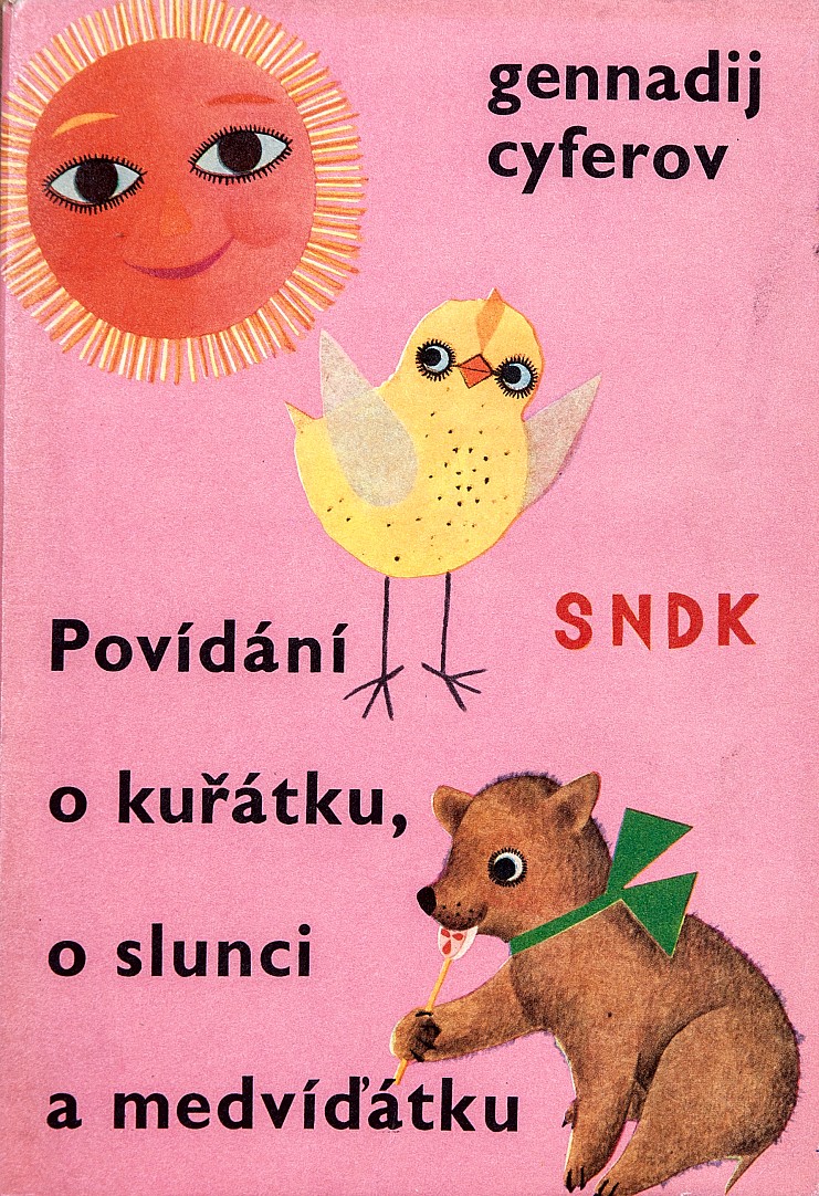 koláž, pastelky, papír, 24 originálních koláží ke knize Gennadij Cyferov: Povídání o kuřátku, o slunci a medvíďátku, SNDK, Praha 1965, kniha součástí, 1 ilustrace z textu chybí, navíc kresba obálky přílohových omalovánek, Provenance: Antiquarian Ostrovní, the disciple of prof. V. Sychra and V. Pukl