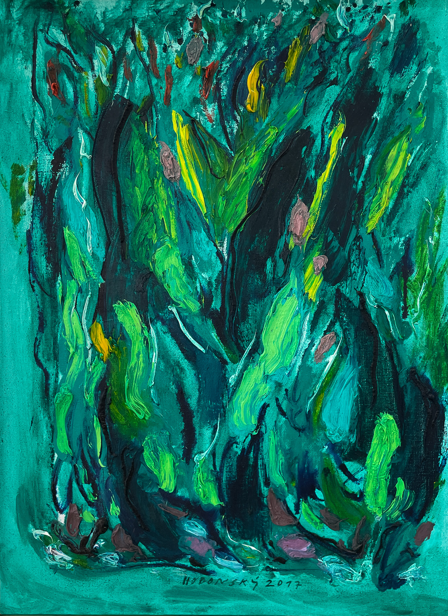 olej, plátno, 2017, 80 x 60,5 cm, sign. DU Hodonský 2017, lišta, František Hodonský je český malíř a grafik, jehož tvorba je hluboce zakořeněná v krajině. Již několik dekád se věnuje zachycení její podstaty – nejen viděné, ale i prožité. Studoval u Františka Jiroudka na AVU, kde později vedl ateliér…