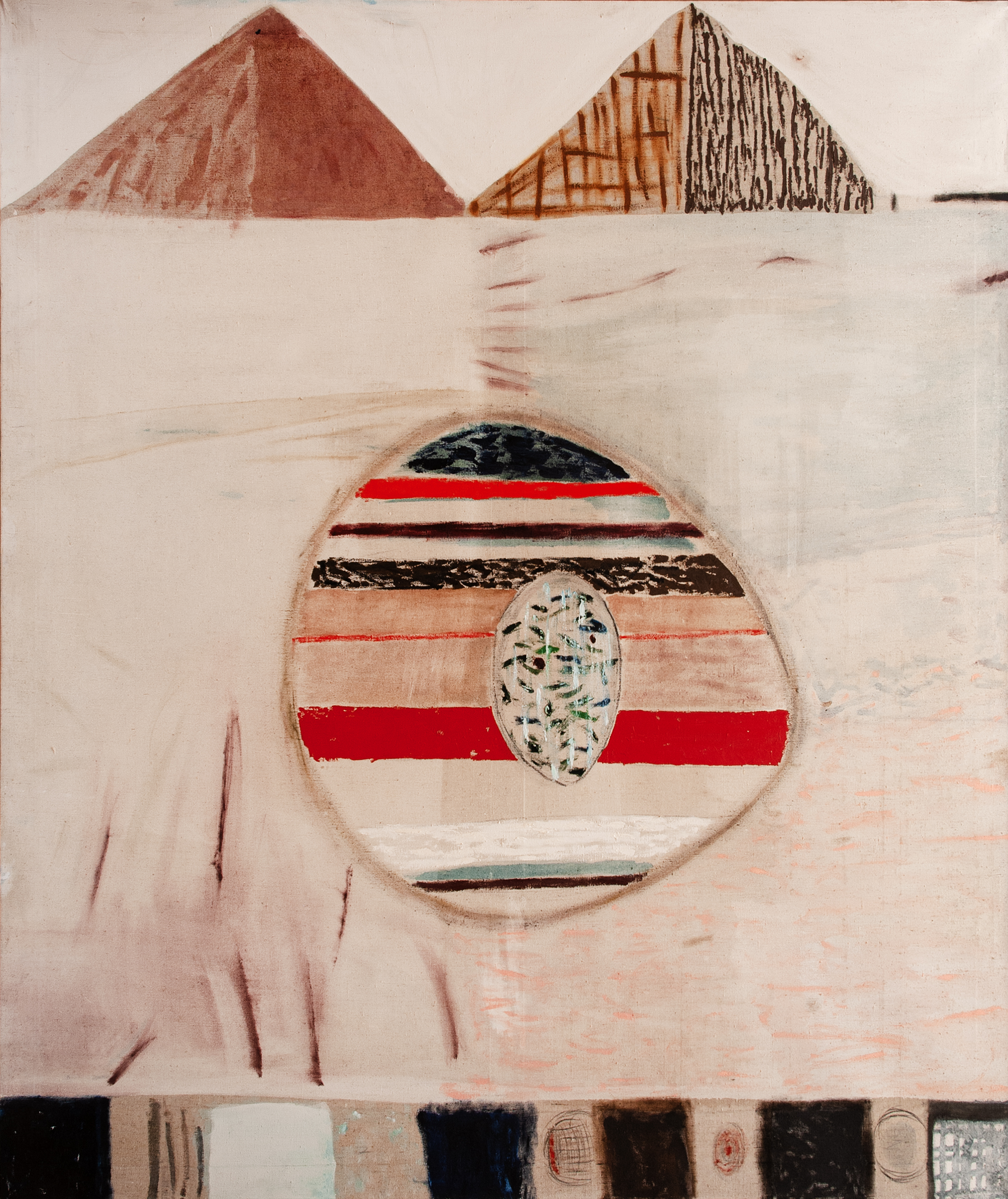 olej, plátno, 1970, 109 x 99 cm, sign. PD Ivan Ouhel 70, rám, vzadu štítek ČFVU, Ivan Ouhel patřil k hlavním českým představitelům lyrické abstrakce. Díky své formě se může na první pohled zdát, že Ouhelovy obrazy jsou čistě abstraktní, často však vycházejí z reálného základu. Nejčastějším námětem …