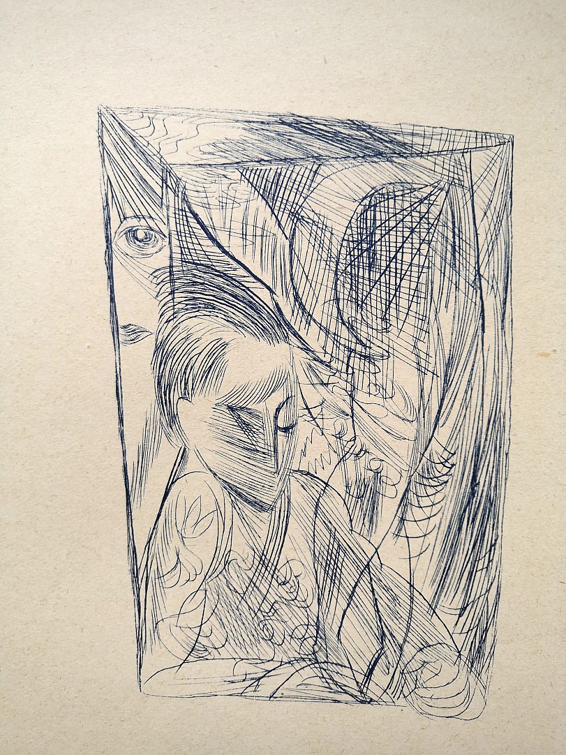 rytina z želatiny, 13,5 x 9 cm, studium na UMPRUM a AVU v Praze, člen SČUG Hollar