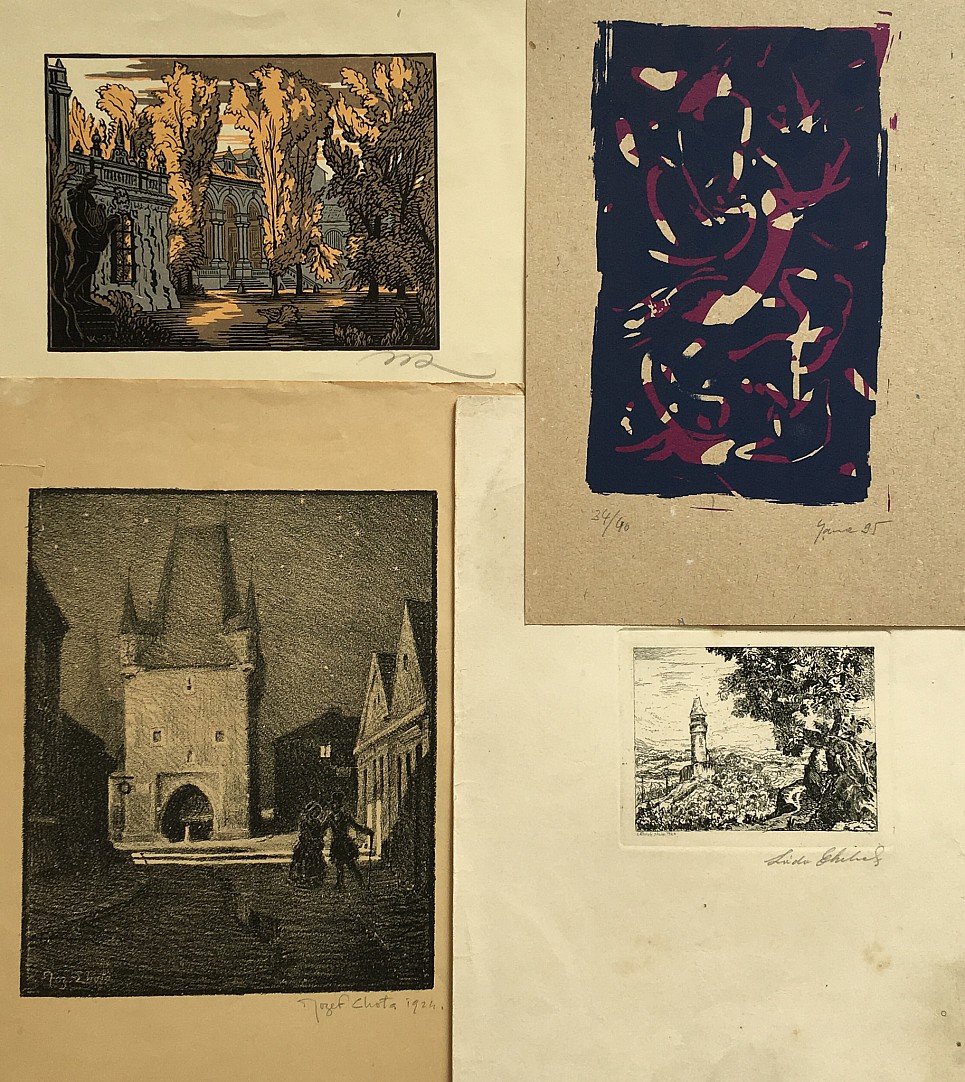 různé grafické techniky, cca 18,5 x 15 a 11 x 14 cm cm, vše sign.
