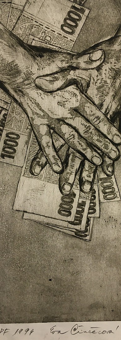 akvatinta, suchá jehla, 40,5 x 16 cm, sign. DU Eva Činčerová