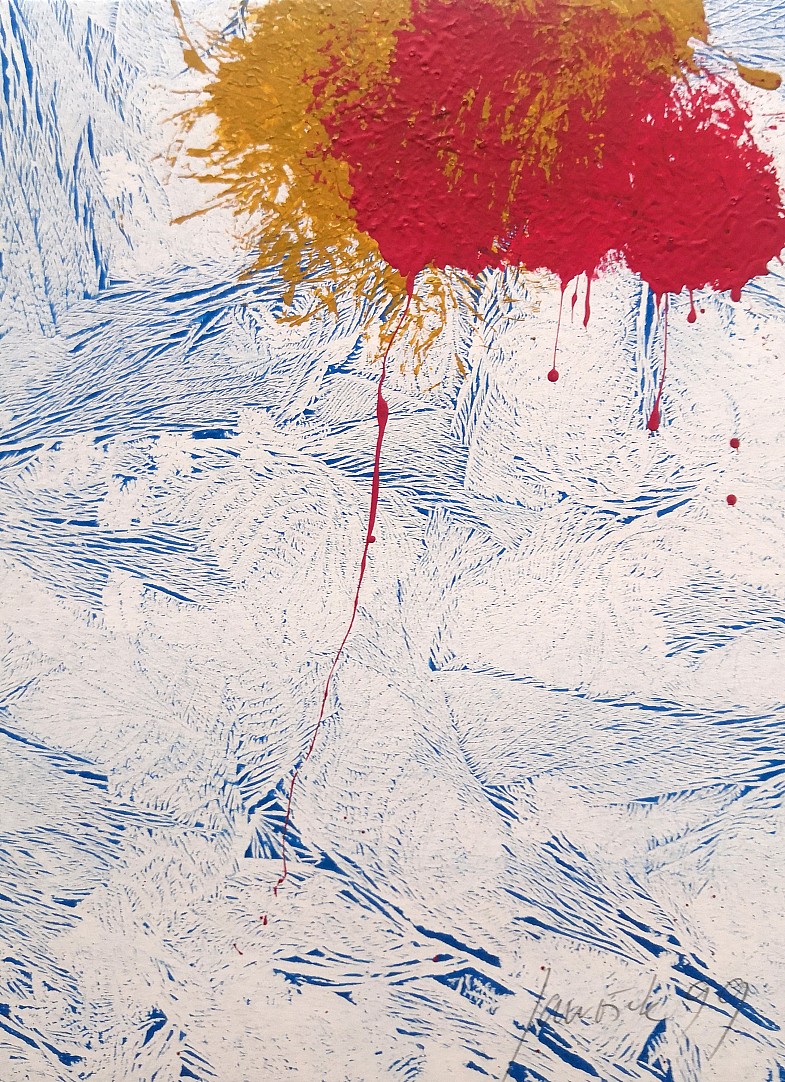 mrazovka s akční malbou, 1999, 20,5 x 14,5 cm, sign. PD Janošek 99