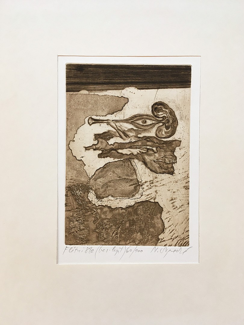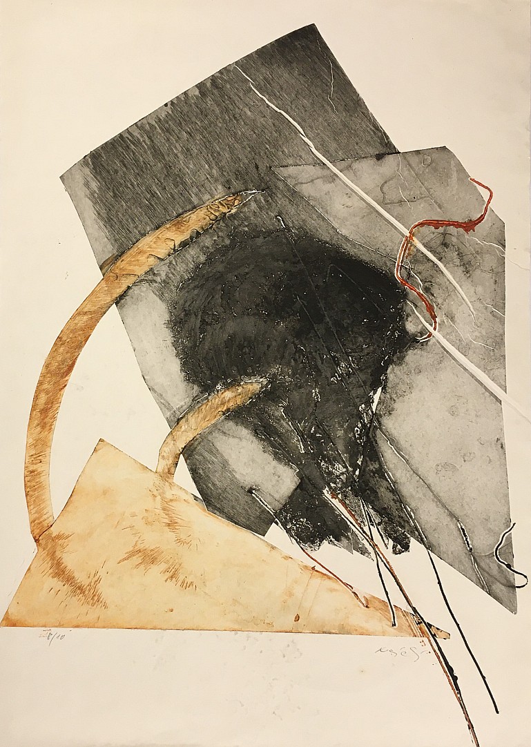kombinovaná technika, suchá jehla, olej, papír, 78,5 x 55 cm, sign. PD Synecká, č. 8/10, kraje mírně ohnuty,po obvodu místy natrženo, papír pomačkaný