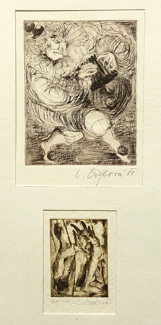 2 x suchá jehla, kombinovaná technika, 1980, 16 x 12,5; 12 x 8 cm, sign. PD L. Lojdová, sign. PD Lojdová, č. 60/70; č. 45/50