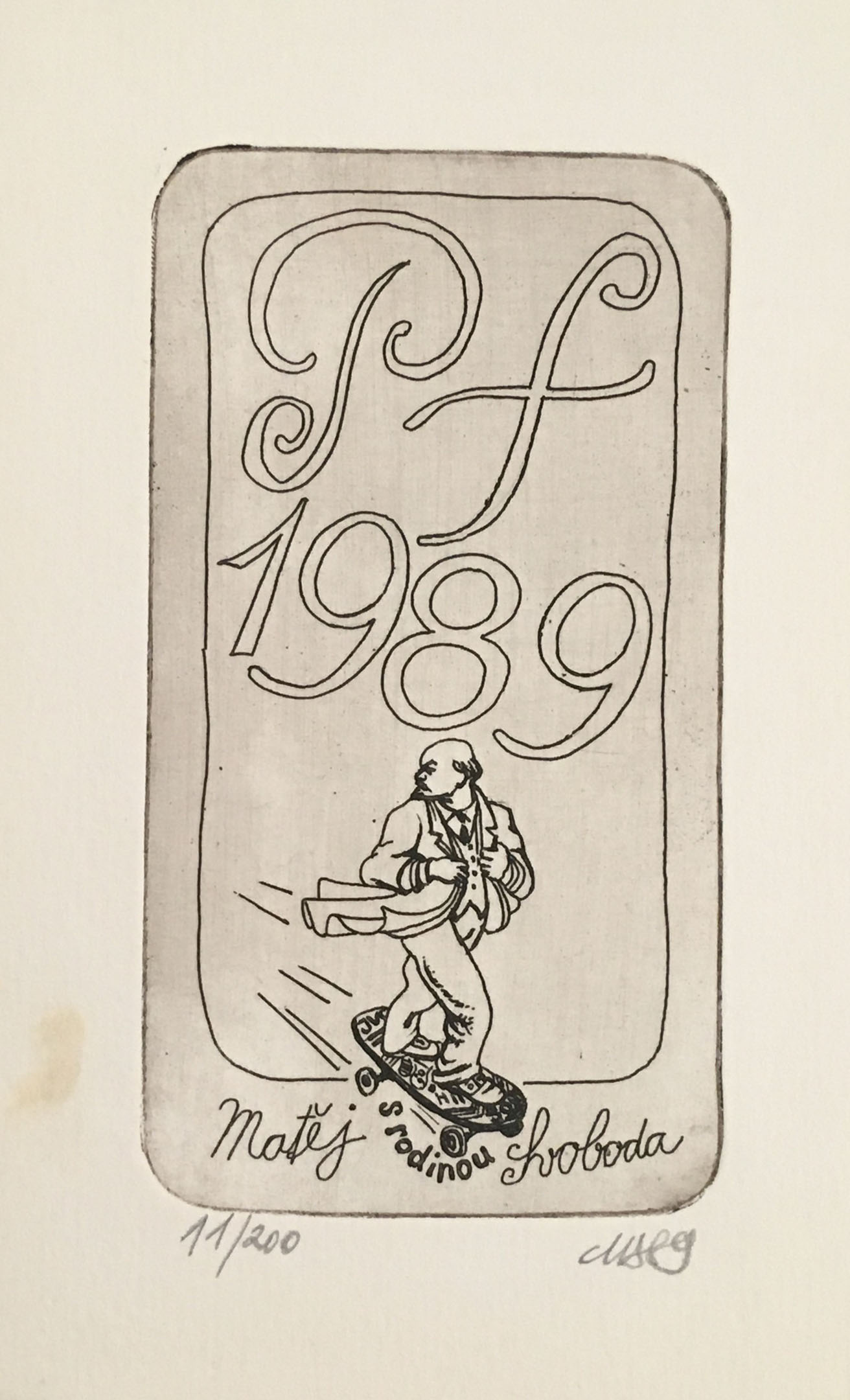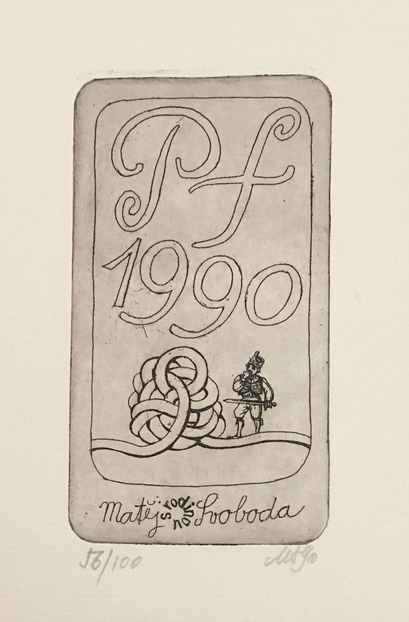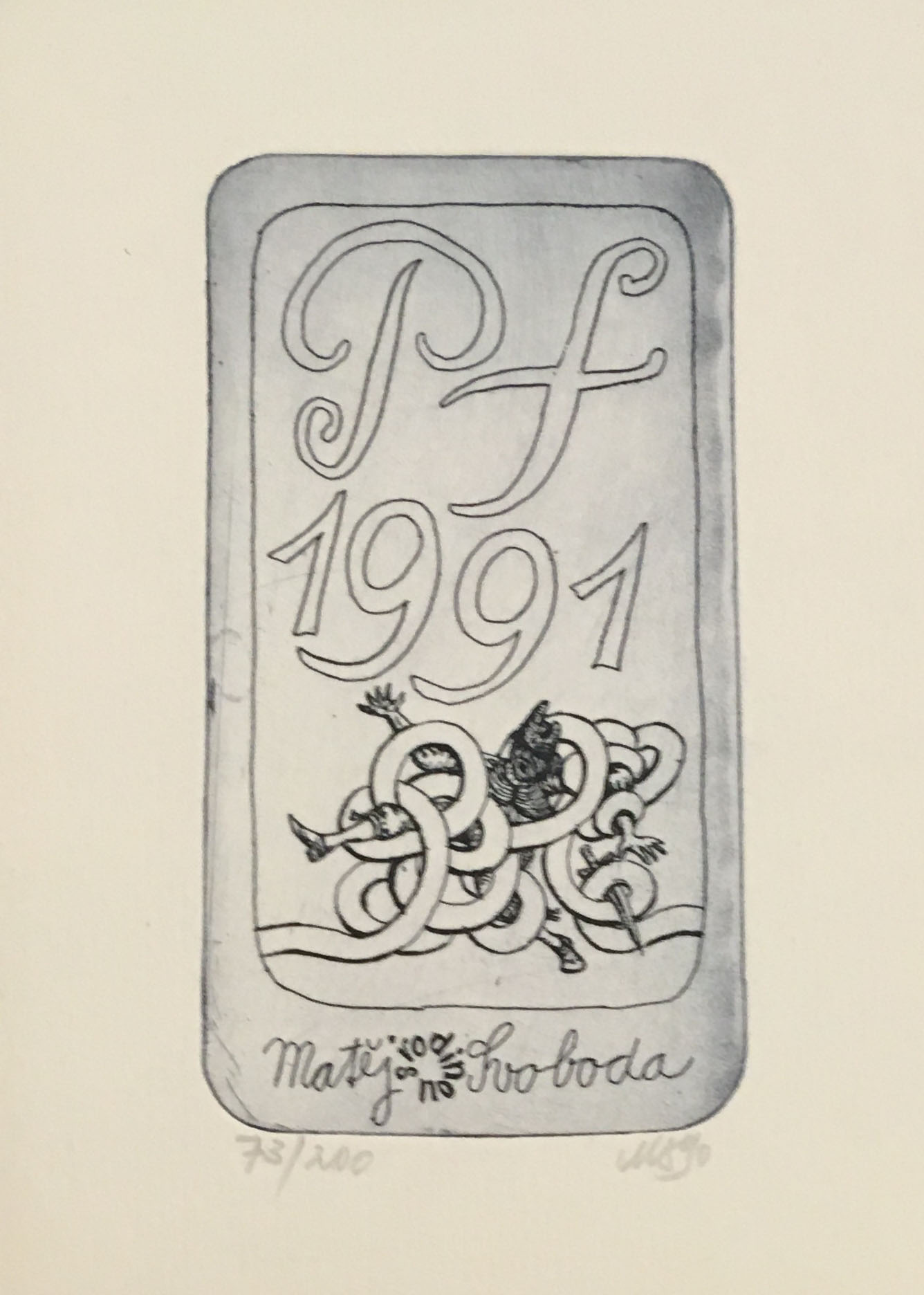 lept, 1989, 12 x 15 cm, sign. PD Matěj Svoboda, č. 64/100, žák prof. V. Tittelbacha a L. Čepeláka na AVU v Praze, člen UVU, zakladatel skupiny 68 pod plachtou a skupiny Tolerance, předseda Asociace volné grafiky