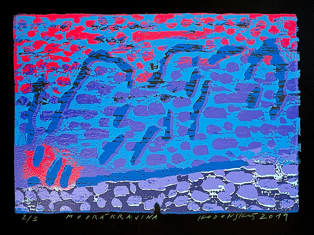 dřevořez, 2019, 35 x 49,5 cm, sign. PD Hodonský, č. 2/3, žák prof. V. Hrocha na SUPŠ v Uherském Hradišti a F. Jiroudka na AVU v Praze, člen Umělecké besedy a SČUG Hollar