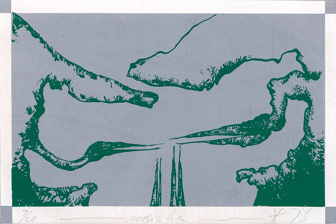 serigrafie, 1973, 12,4 x 18,3 cm, monogr. PD, rám, č. 7/211, the disciple of prof. O. Spaniel, J. Lauda and K. Pokorny