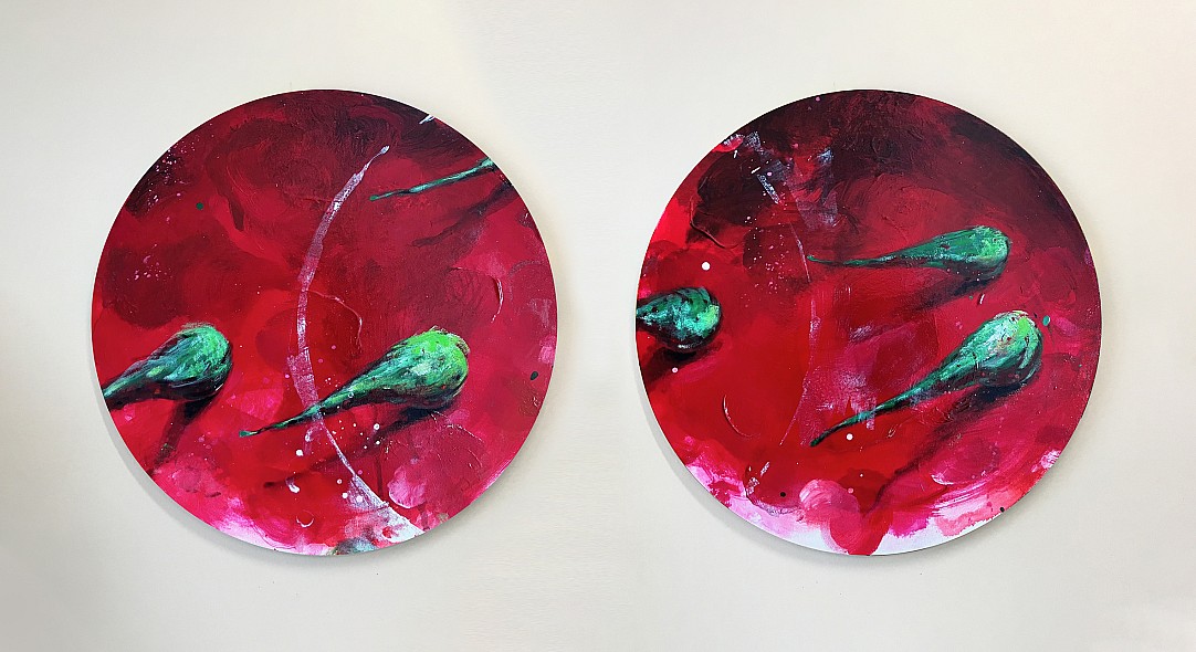 akryl, plátno, 2023, průměr 50 cm, sign. vzadu 2023, diptych