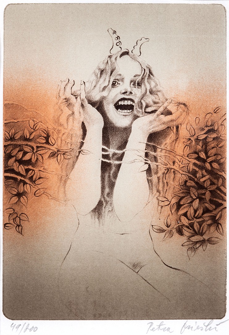 litografie, 18 x 13 cm, sign. PD Petra Oriešková, rám, č. 49/200