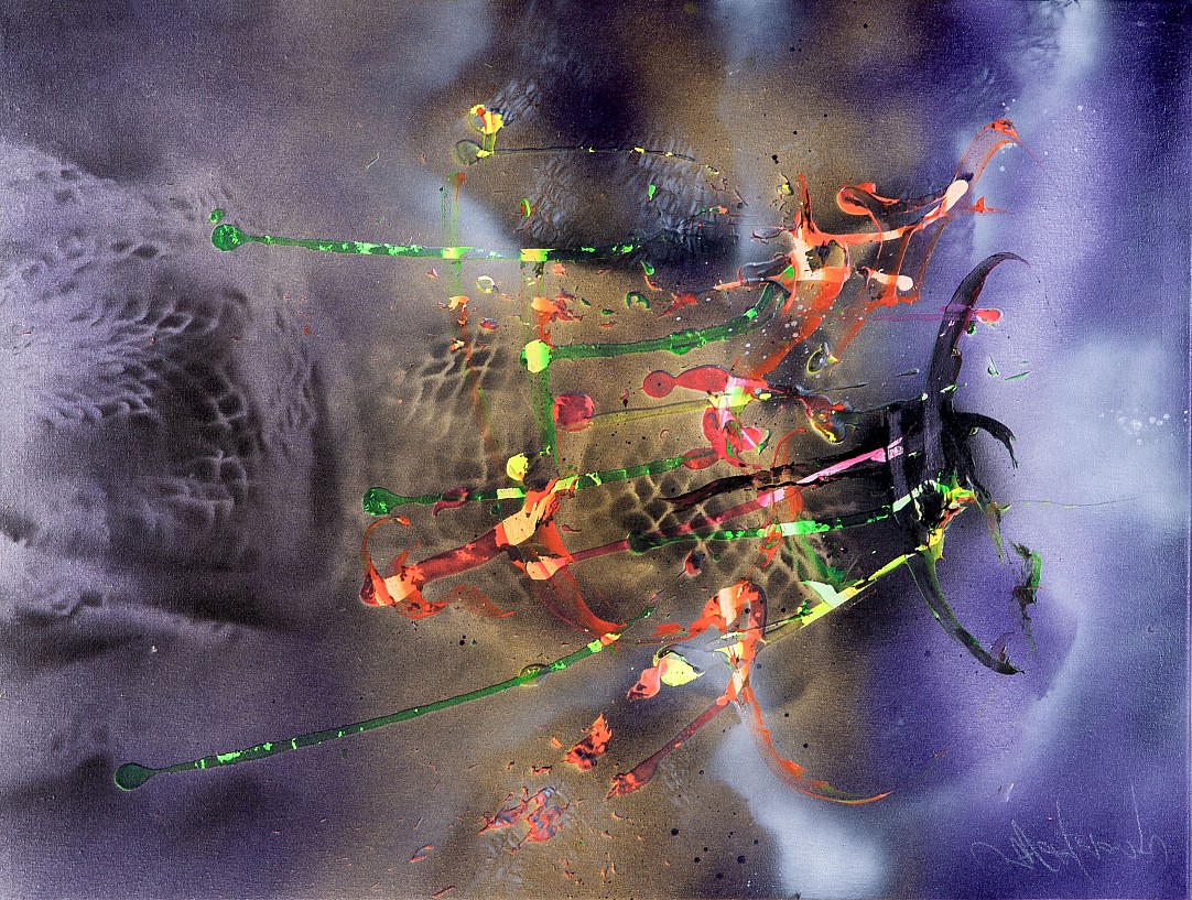 špachtlová technika, akryl, plátno, 2025, 80 x 60 cm, sign. LD Bob 2025, klínový rám, autor ve své charakteristické práci slučuje zájem o kaligrafii a surrealismus, na zadní straně značeno autorským razítkem a popsáno autorem, Provenance: Antiquarian Dlážděná