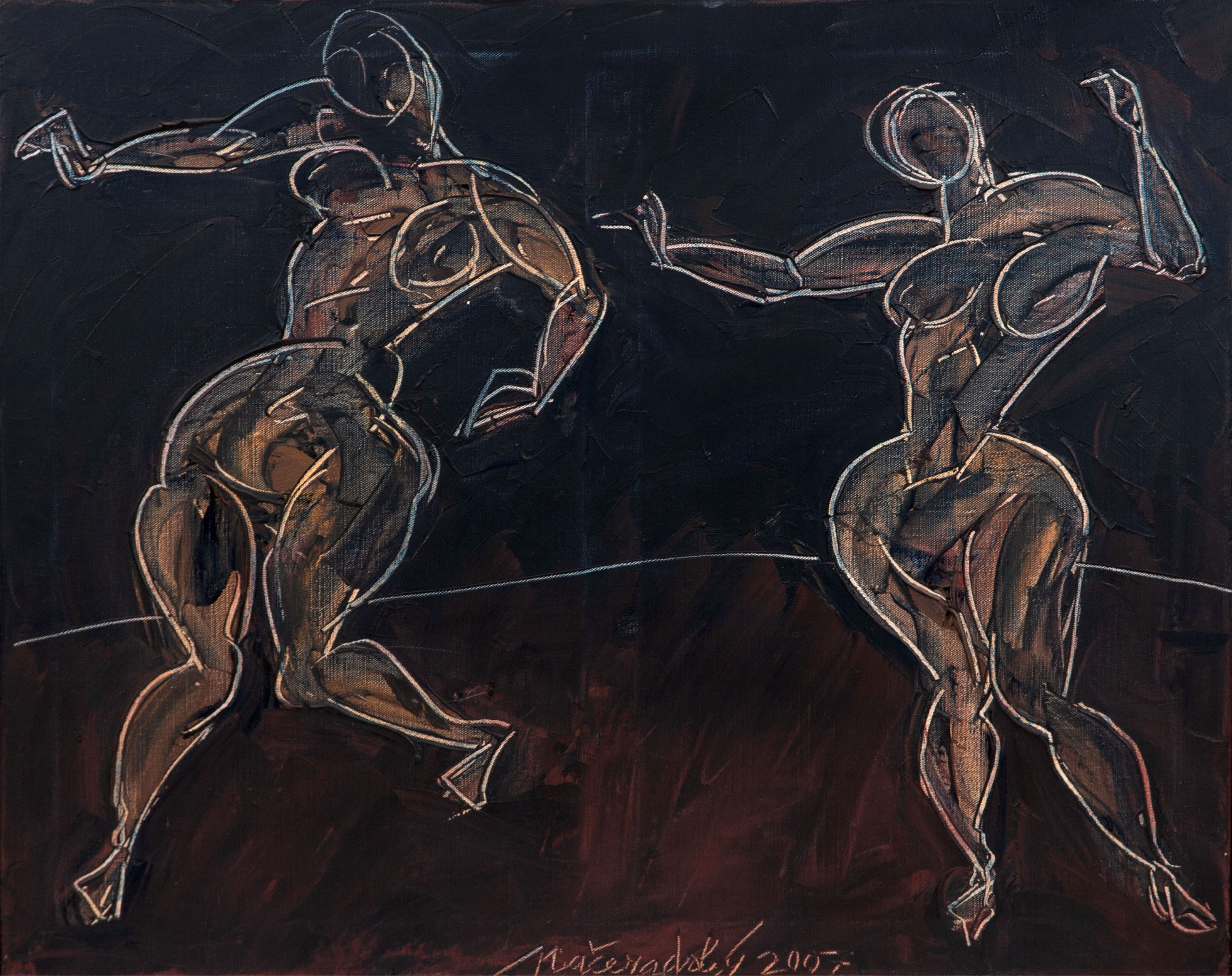 olej, plátno, 2007, 73 x 92 cm, sign. DU Načeradský 2007, rám, Jiří Načeradský se proslavil jako čelný představitel Nové figurace šedesátých let. Nabízená malba z roku 2007 je dokladem o vyzrálém přístupu zkušeného Mistra k malbě, kdy upřednostnil redukované tvarosloví před precizností provedení. Ji…