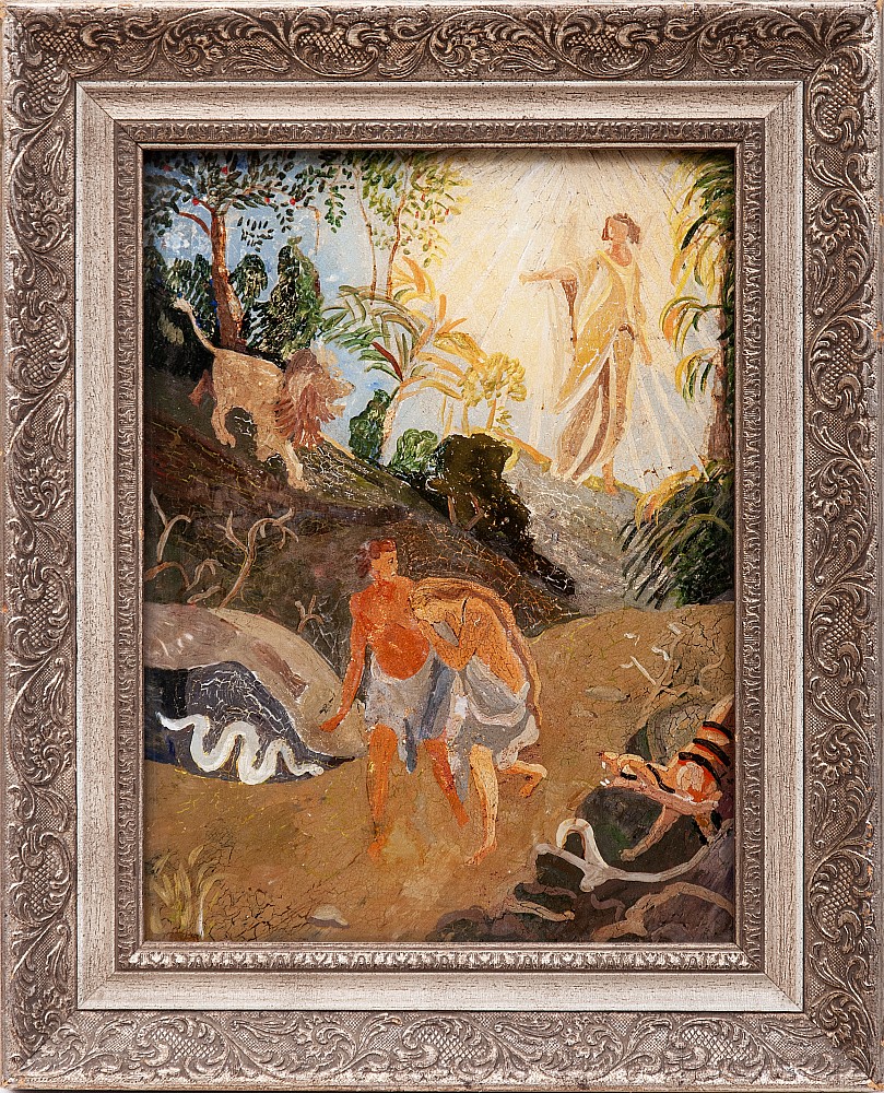 podmalba na skle, 40,5 x 30 cm, rám, Antikvariát Dlážděná